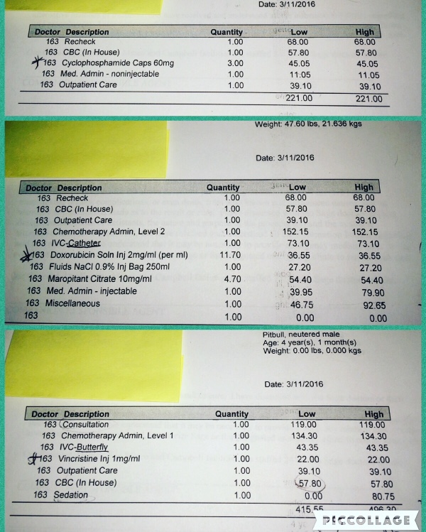 I brought him back in for bloodwork, but the Oncologist had called his vet and recommended her to do some X-rays, an Ultrasound and an additional 2 aspirate slides to determine what stage his cancer is in and which cells his Lyphoma has. I work part time at a Vet Hospital as a receptionist and go to College as well. I don't have a lot of money and even with an employee discount, his bill racked up easily to $1,200. I knew I had to use whatever savings I had and the money I received back from my Tax refund to help my lovebug out.