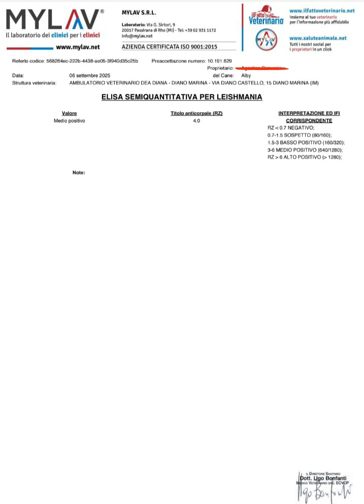 Ciao a tutti, sono Mariagiulia Patrevita e non credevo mai nella vita, di fare questo passo, ovvero chiedere aiuto economico alle persone.. Non è da me. Sono qui perché voglio a tutti i costi salvare il mio cane di nome Alby affetto , purtroppo, dalla malattia Leishmaniosi. Come dicono non si guarisce dalla malattia,ma ci si può convivere... quando ho scoperto l' esistenza del dottor Barbato,devo dire che un po' mi sono ricreduta.. Leggendo tutte quelle recensioni positive dove i loro cani sono completamente guariti ho deciso e mi sono impuntata di provare a salvare il mio carissimo amico a quattro zampe.. Ma il costo è troppo alto, per la terapia di un solo mese a distanza mi ha chiesto 630 euro. Più i soldi da dare al veterinario che lo seguirà di persona... Chiedo aiuto perché non mi resta altro, spero che riuscirò ad avere più aiuti possibili per riuscire a contattare il signor Barbato.. La speranza è l'ultima a morire, ma a volte la prima ad illudere.. io non mi arrendo!!!voglio provarci!!! sono sicura che su questo mondo ci sono ancora persone buone.. Al mio cagnolino non so quanto gli resta da vivere ... So solo che è al 4 stadio ed è molto grave. Il suo veterinario gli ha prescritto una terapia ,ma purtroppo a me sembra che faccia l'effetto contrario e questa cosa mi sta già uccidendo.