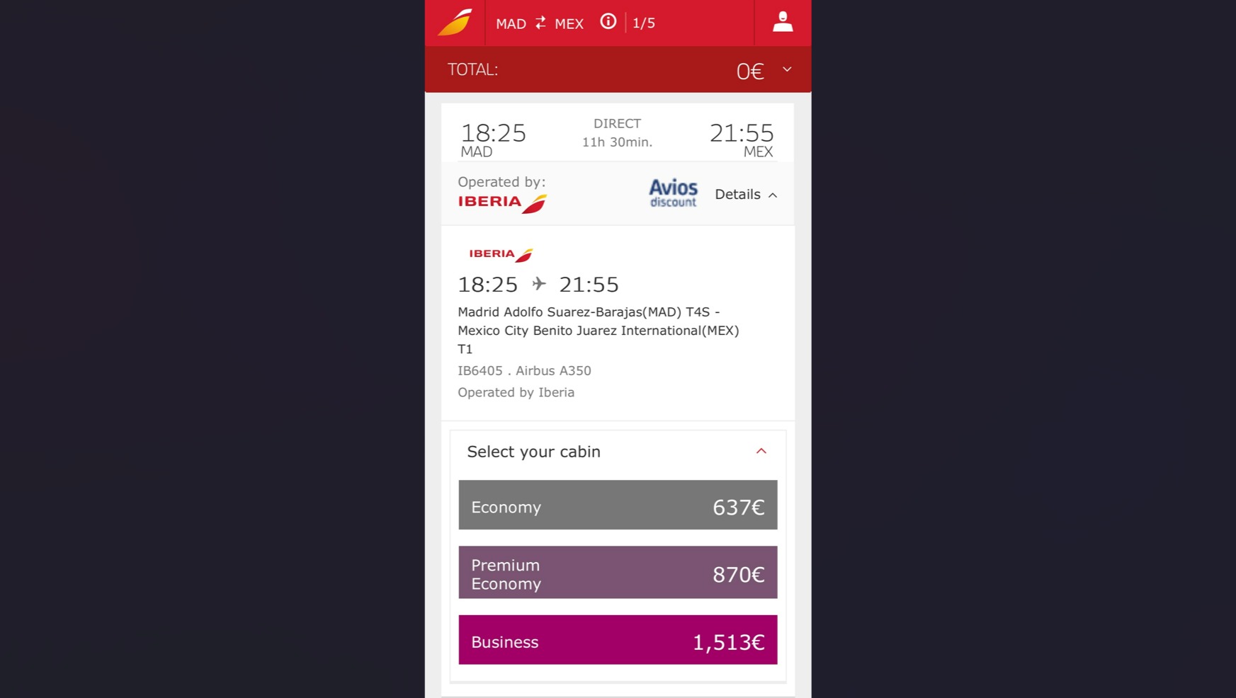 Esta imagen es una muestra del coste del viaje de ida solo de Madrid a México DF: