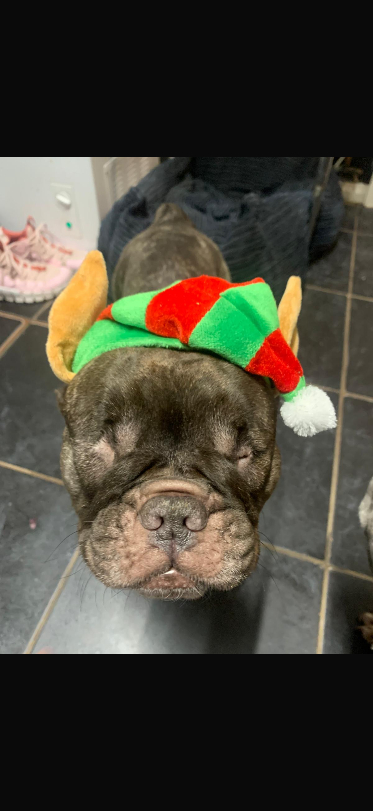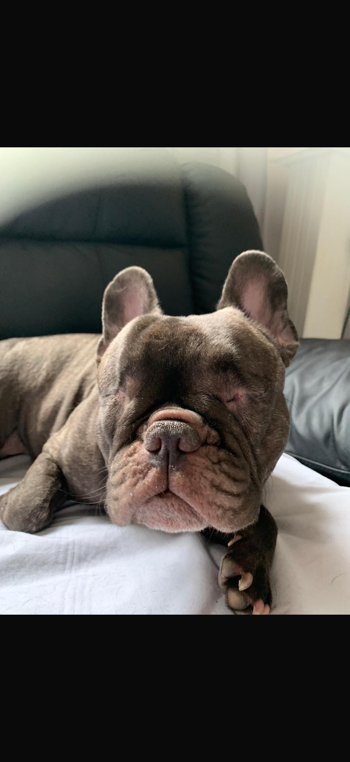 Hi my name is Lottie let me tell you my story. I am a French bulldog and I have lots of allergies which is quite typical for my breed and that’s ok cos my human family pay extra for special diet food for me and that’s manageable. 2 years ago I had an ulcerated eye that despite having daily treatment for it ruptured and I lost my eye, at the same time the vets tested my other eye and found that to have lesions on it which they treated immediately, however a month later I lost my other eye. I have no eyes but I can hear really good and love my walks and playing with my brothers and sisters.
