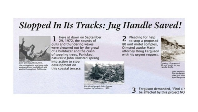 The film is also about the group of people who came together to save the land from being developed. Once Dr. Jenny sounded the call, inspired and led by the naturalist, John Olmsted, teachers and small business owners mainly from the San Francisco Bay Area visited Jug Handle. They fell in love with the land and began the process of saving it from immediate and future development. That process included standing in front of bulldozers with injunction papers and years of fundraising to pay off the mortgages once they purchased the land.