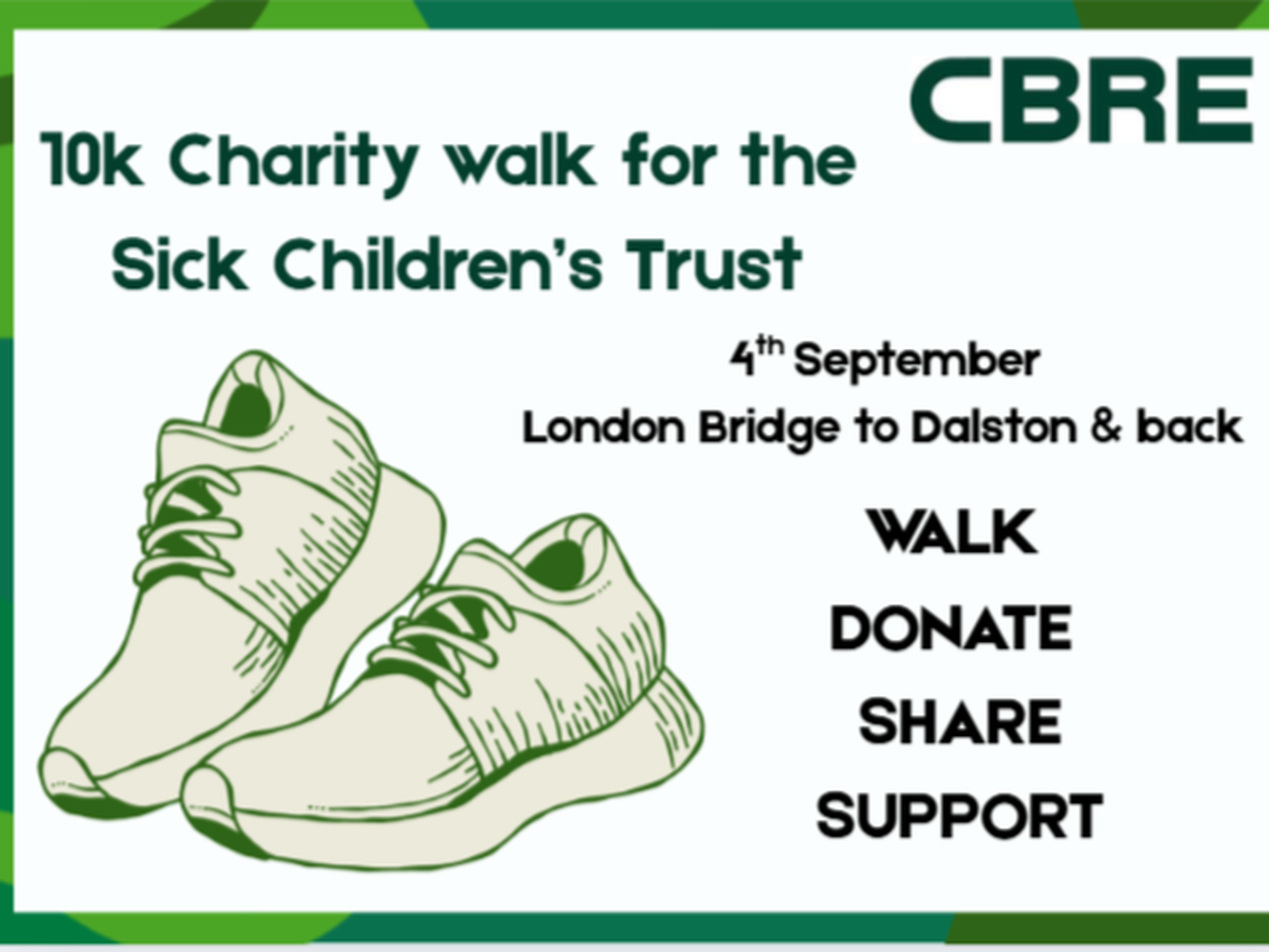 On the 4th September our colleagues at CBRE MACW division are taking on a 10K walk from London Bridge to Daltson to raise vital funds for The Sick Children’s Trust, a charity that provides free accommodation and emotional support to families with seriously ill children in hospital.