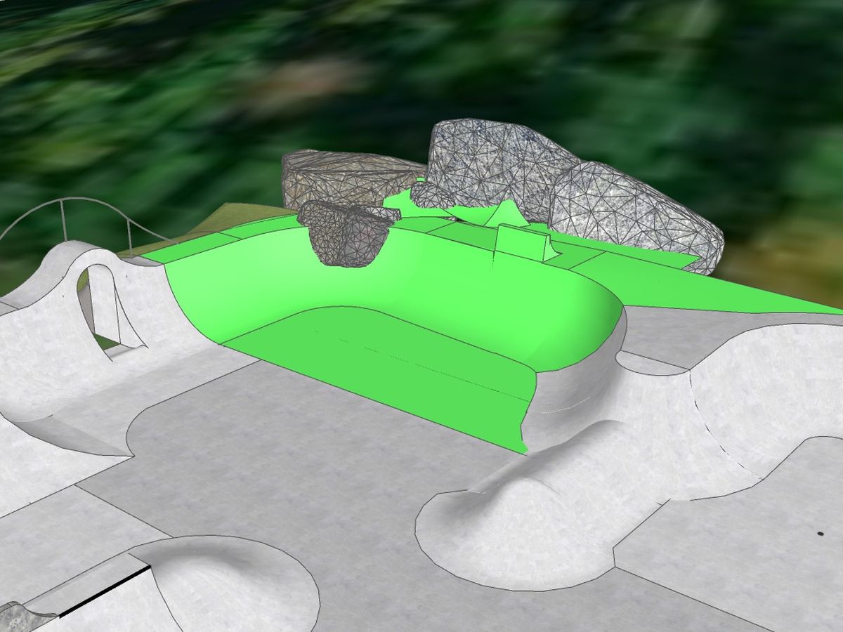 We are raising money to expand the skatepark in the space that the town has allotted for us. We are raising funds for the section colored in green. 1,400 square feet of new concrete to have fun on sounds pretty nice, doesn't it?