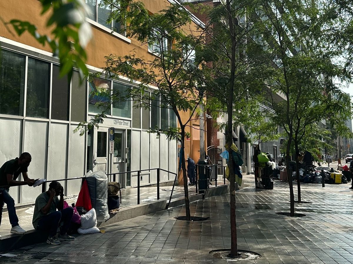 Right now, refugee claimants and asylum seekers are stranded and sleeping on the sidewalk outside of 129 Peter Street, a City of Toronto building that refers unhoused people into shelter space. These folks are not seeing workers, and are not being provided with basic necessities like water or food.