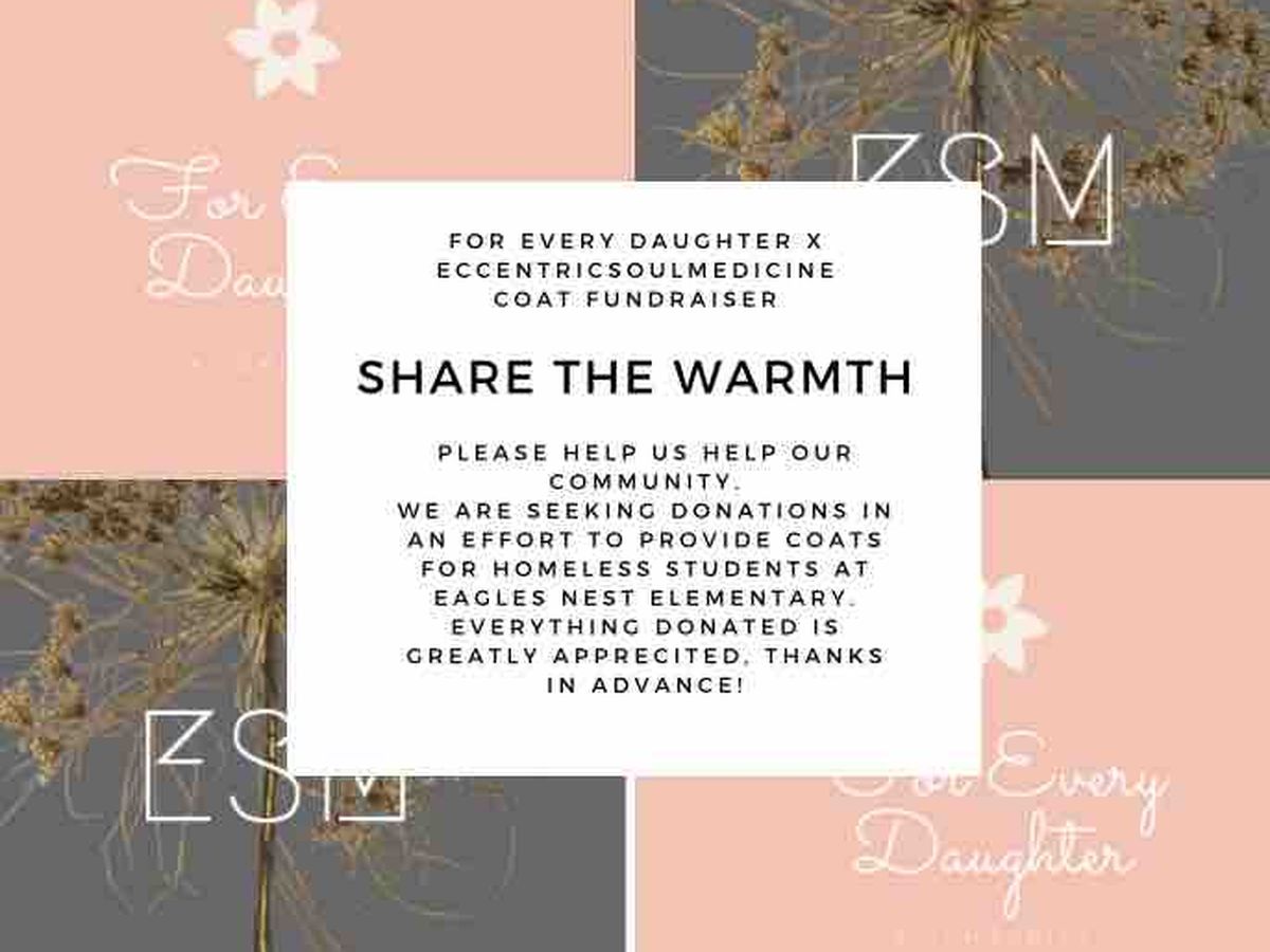 For my first initiative, I am collaborating my blog “For Every Daughter” with a local black owned business “Eccentric Soul Medicine.” We are seeking to raise funds of 700 dollars, so that we may be able to provide homeless students at Eagles Nest Elementary with coats for the winter. Please know that everything donated is greatly appreciated! We thank you in advance!