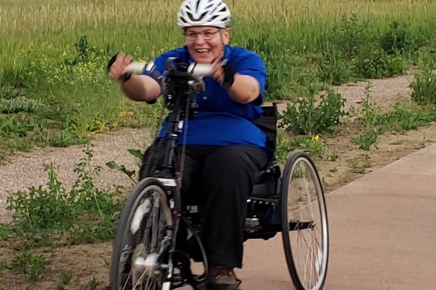 After having ridden to the top of Cottonwood Pass, a 12,100 foot pass in the heart of the Colorado Rockies, on Day 5 of the Bicycle Tour of Colorado, Wanda was at the top of the world. After celebrating with photos, she and her friends began the exhilarating descent. After just 3 minutes of riding, another cyclist lost control and crashed into Wanda, catapulting her off the side of the road into a ravine below. It soon became apparent to rescuers that Wanda had suffered a serious back injury, resulting in paralysis from mid chest down, along with a fractured right arm. Wanda was airlifted to St. Anthony's Hospital in Lakewood, CO where doctors performed surgery on her back and arm. Following that, Wanda spent 2 months in Craig Hospital undergoing intensive daily therapy and returned home in September, 2013.