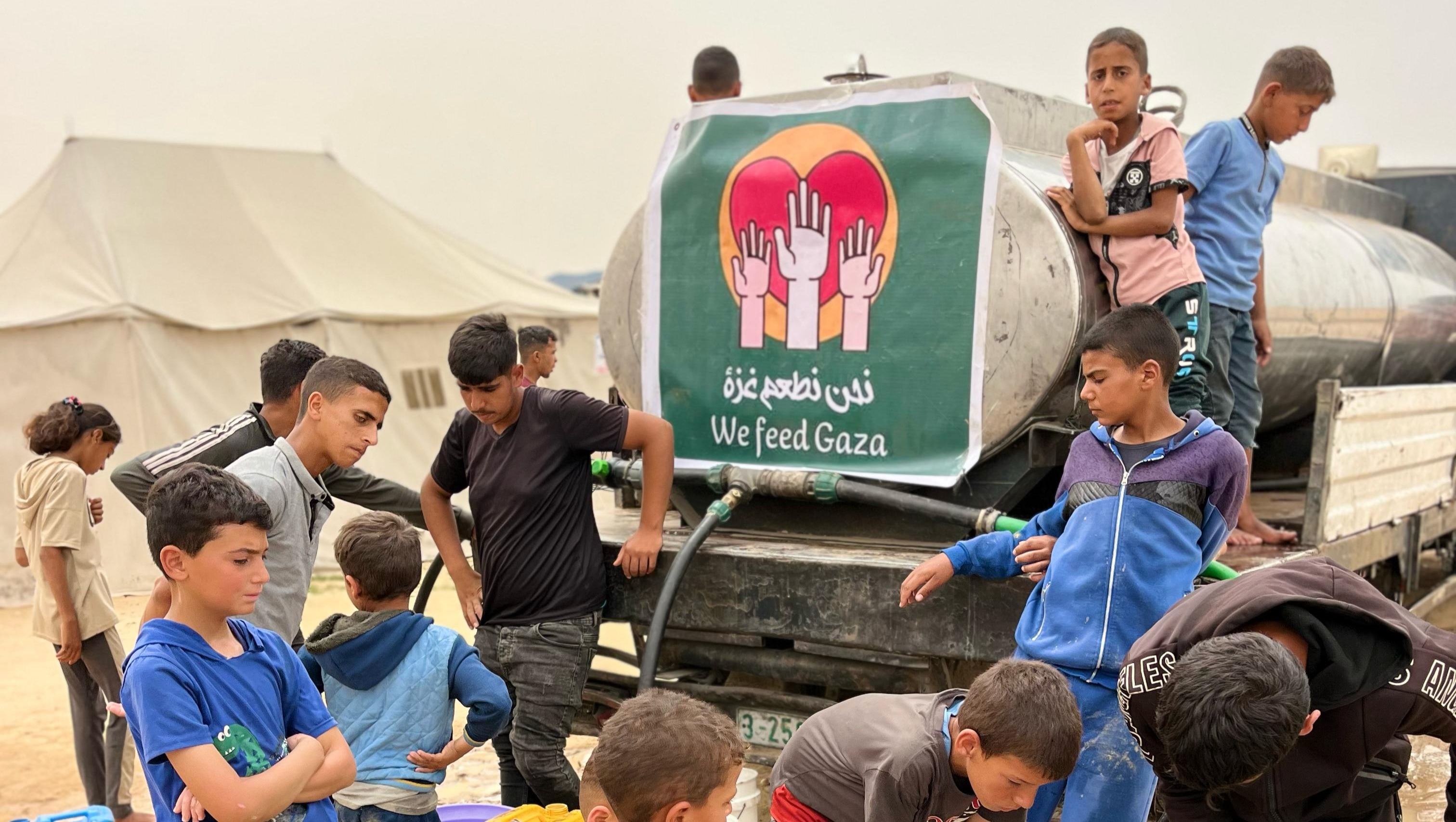 My name is Omar, founder of We Feed Gaza. We are an independent Catholic movement to feed and aid starving families in Gaza. As of today, we have distributed 290,000+ liters of fresh water, 10,400+ treats for children, 6,200+ meals, and a combination of meats, vegetables, fruits, biscuits, cheeses, juices, milk, tea, rice, eggs, lentils, pasta, hummus, tuna, bread, flour, salt, oil, sugar, yeast, jam, dough, chocolate, pastries, indomie, eggplant, tomato sauce, canned foods, medicine, vitamins, shampoo, blankets, diapers, baby starch, and toys for 18,498 families. We have successfully prepared, distributed, and cooked food aid packages almost daily!
