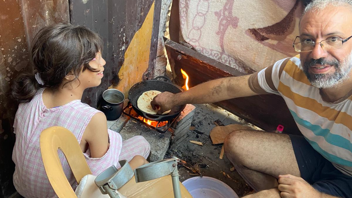 Wesam Sharaf and his family in Gaza