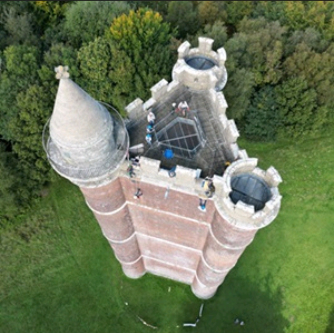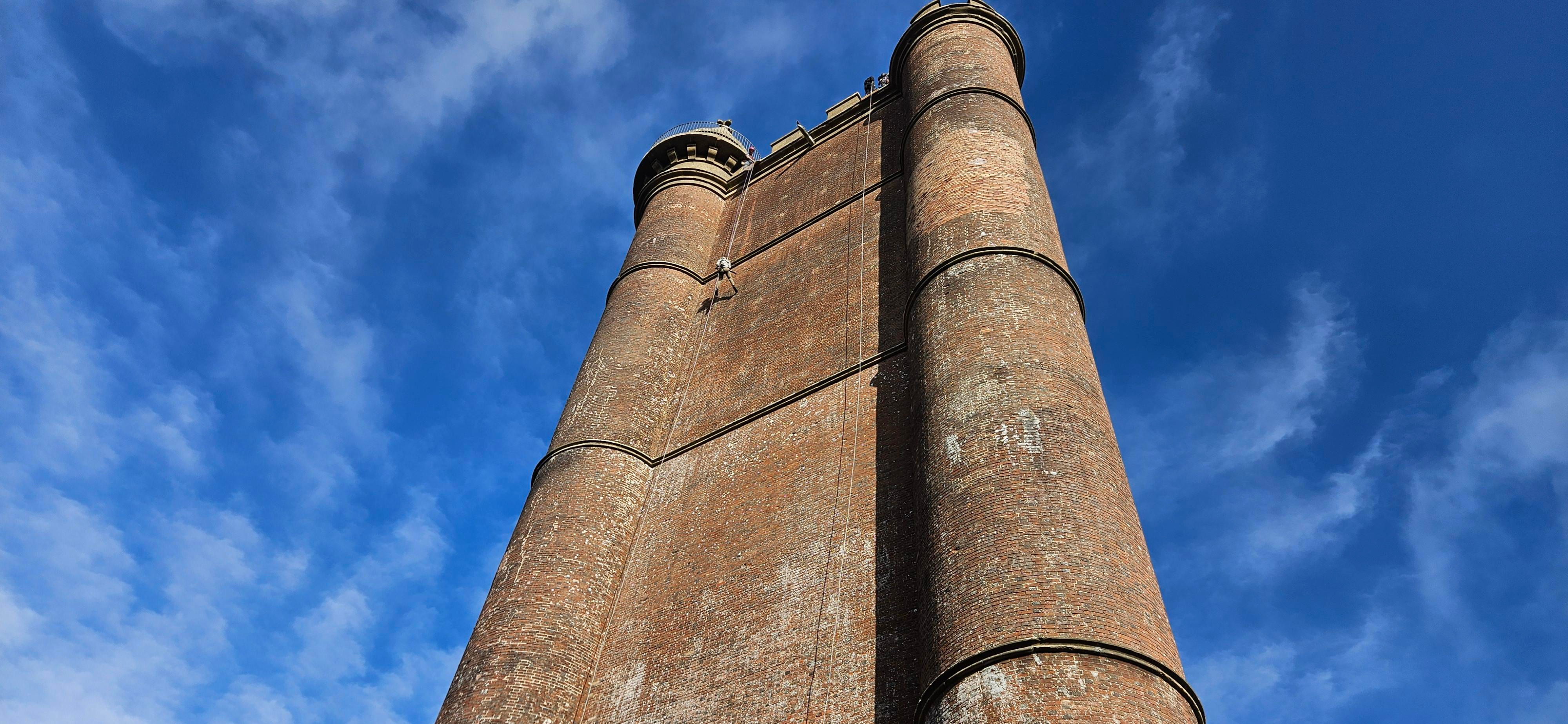 We’re taking on a challenge that’s equal parts exhilarating and terrifying: abseiling down King Alfred's Tower near Stourhead. The tower is 160 feet (49 meters) high.