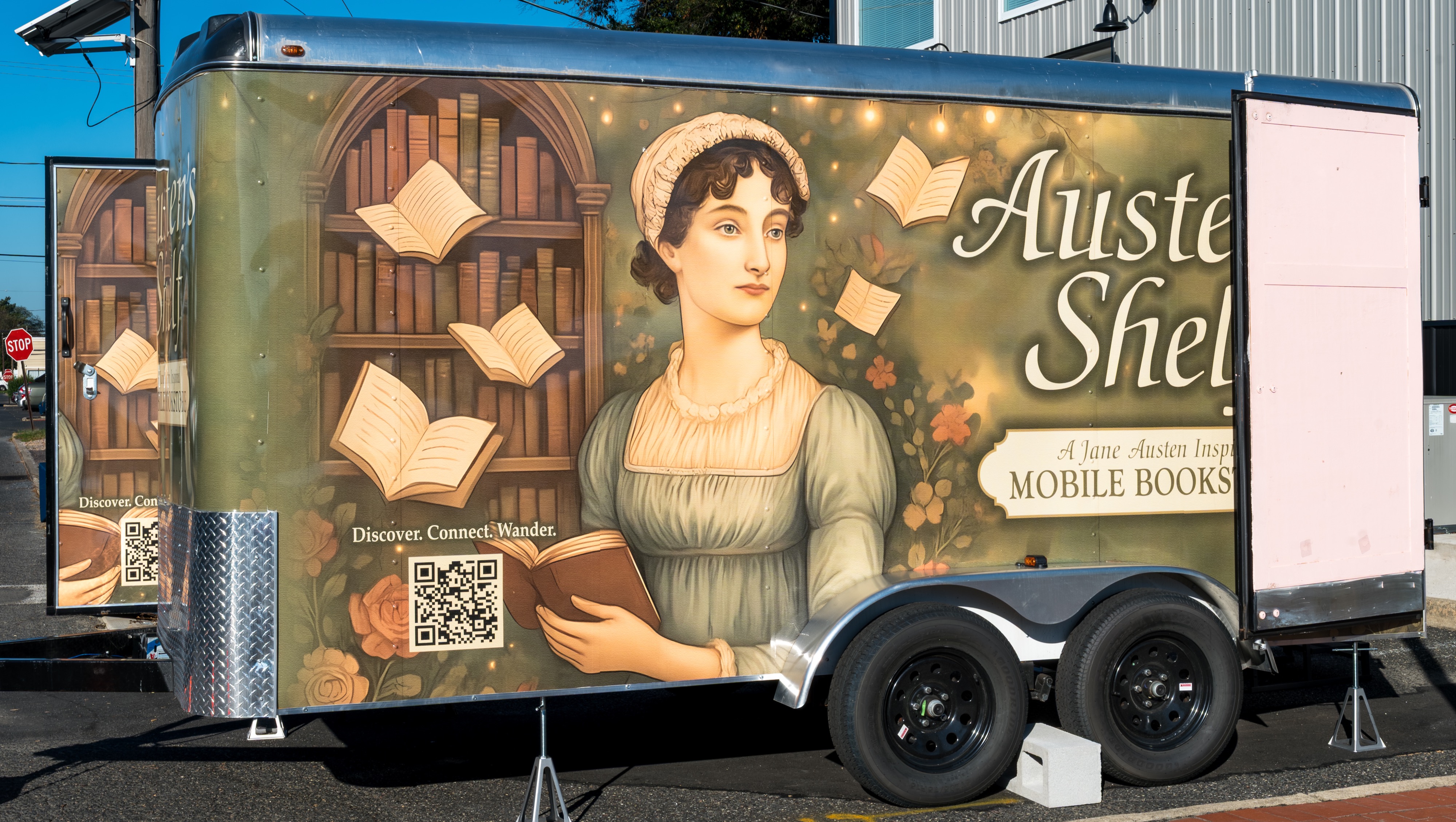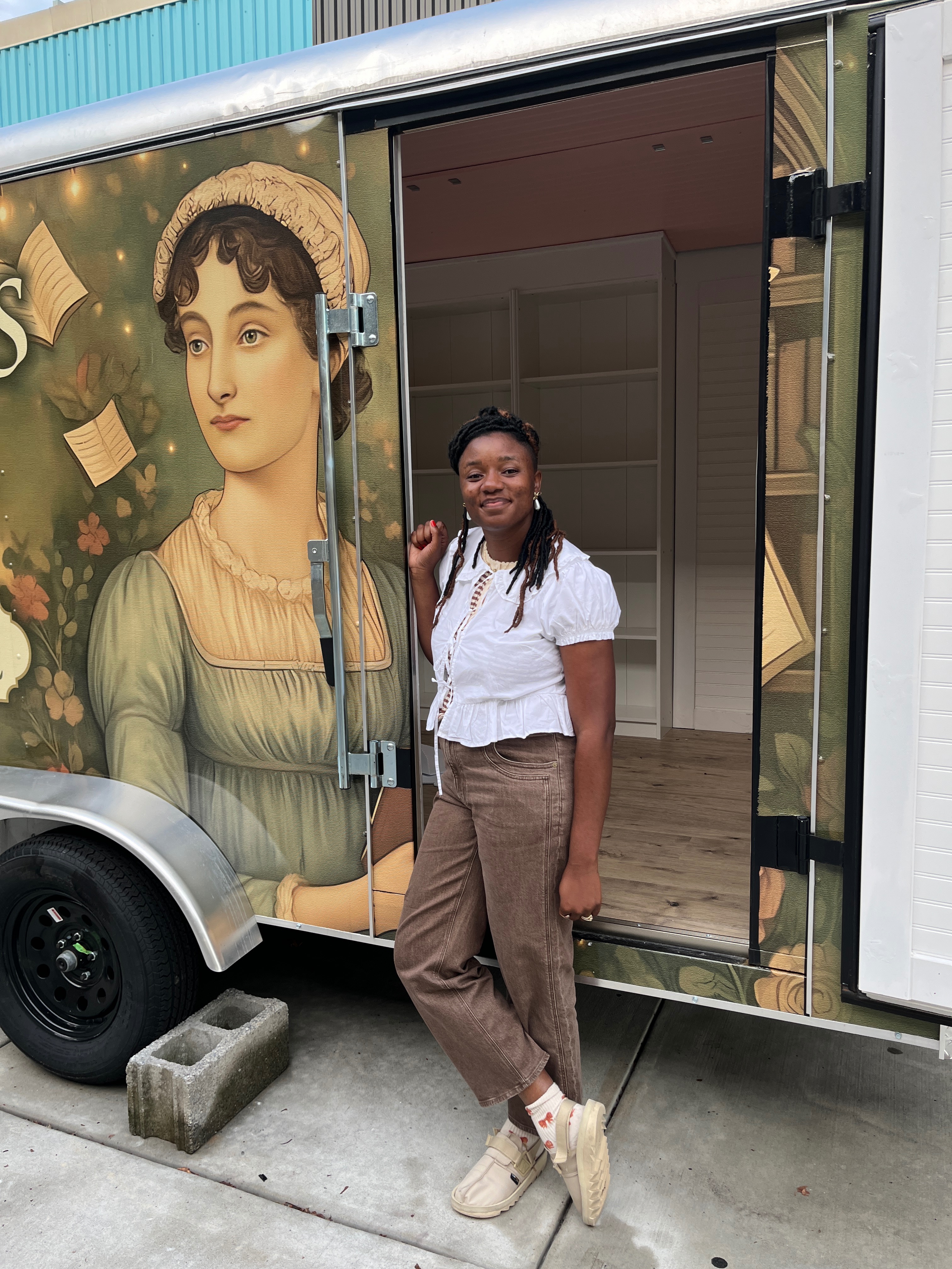 A week after, I chose a 98 square foot landscaping trailer with barn doors. This would be my bookstore inspired after my favorite author, Jane Austen. Someone whose life taught me to never give up.