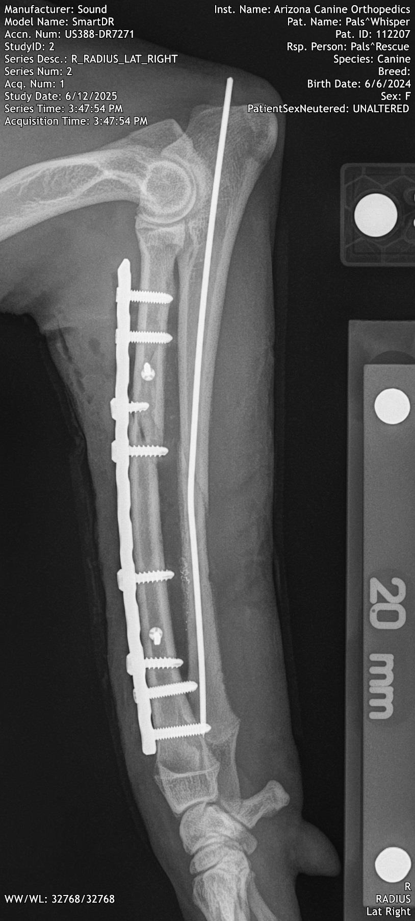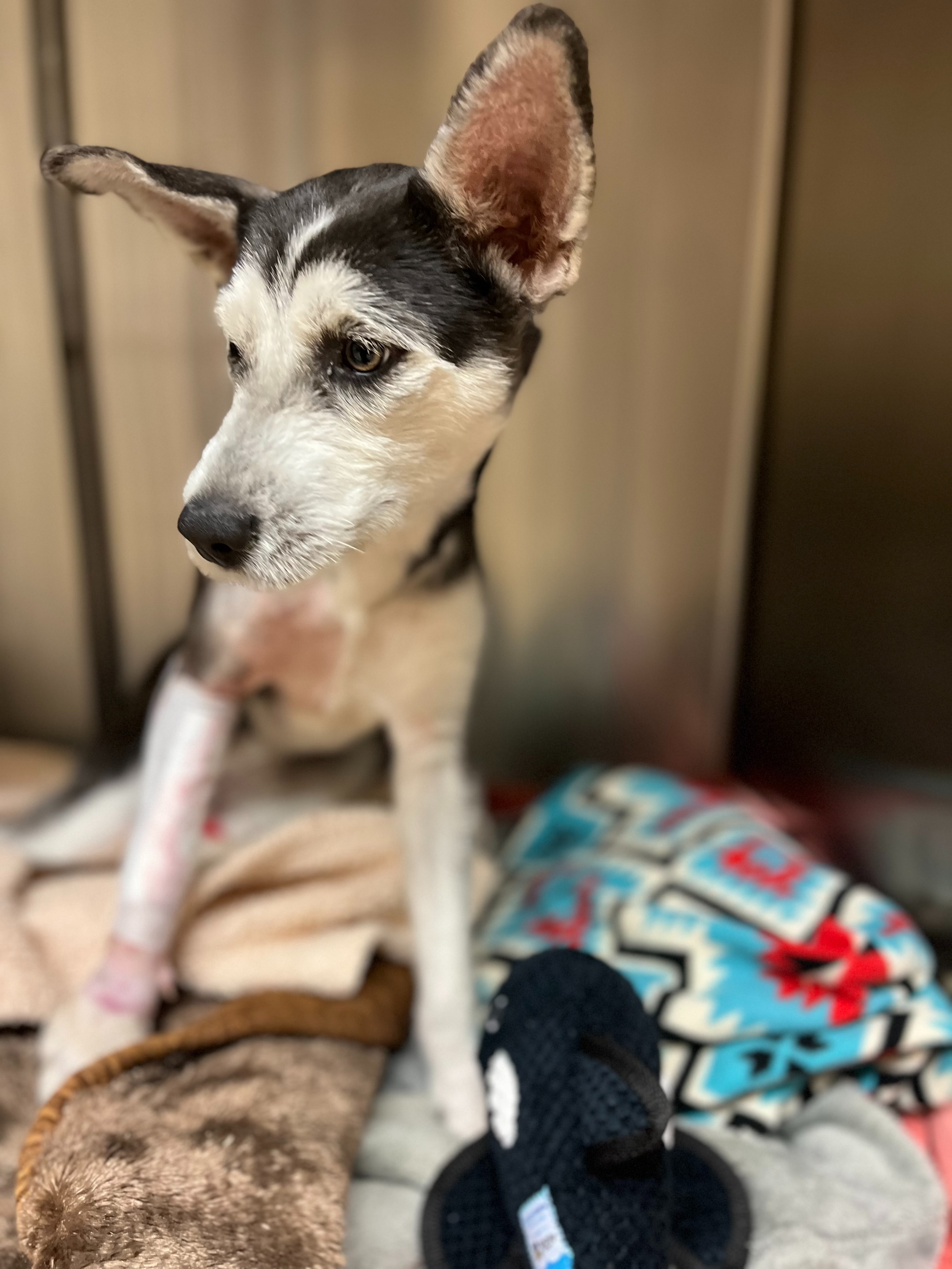 Because Whisper is under a year old and in good health, we decided to try and see if her leg could be saved. Dr. Hoban contacted Dr. Lirtzman of ACOSM and he agreed to try and save Whisper's leg.