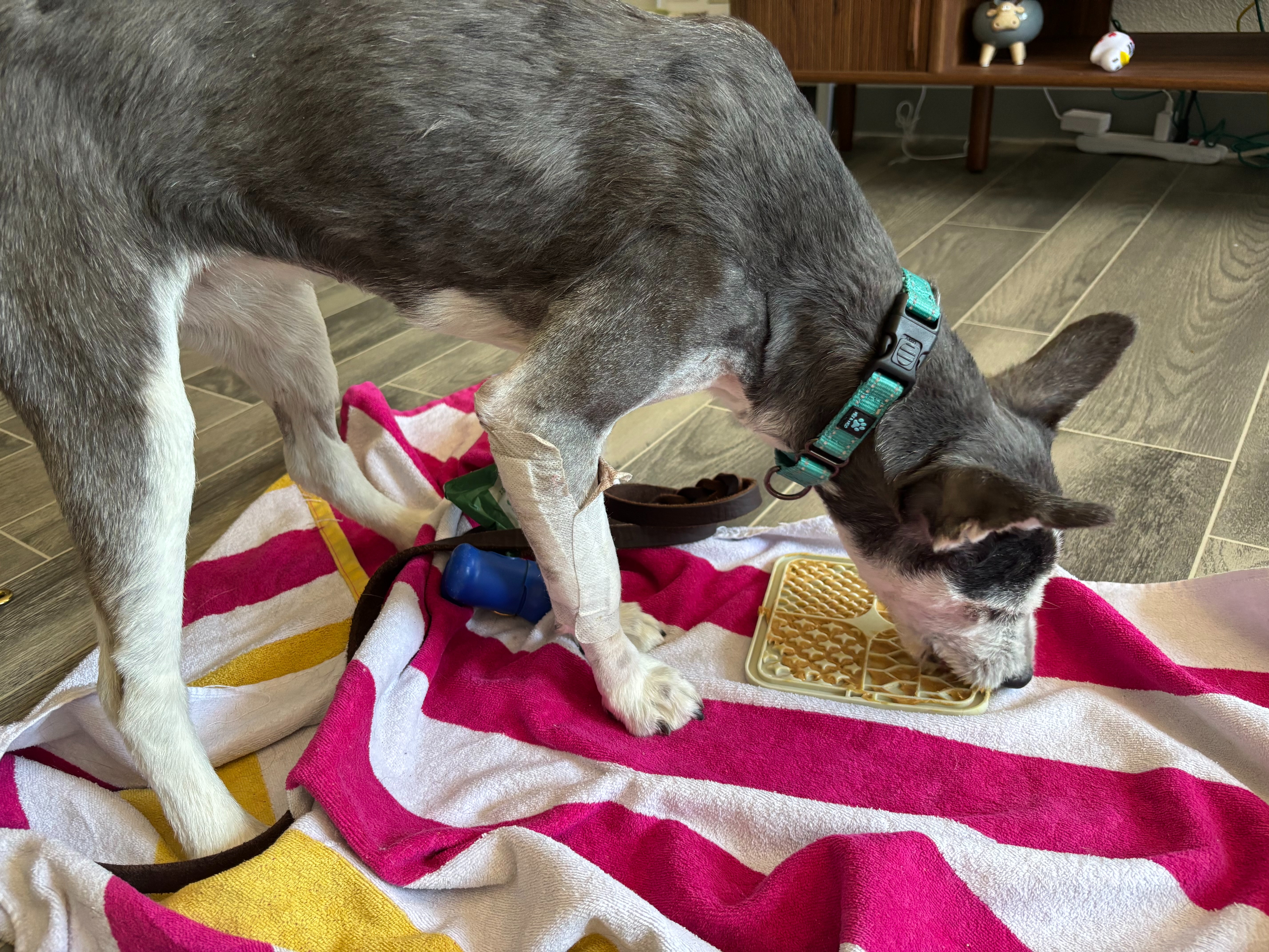 We immediately noticed there was something wrong with one of her front legs and were able to bring her to Friendship Pet Hospital. Dr. Lynne Hoban confirmed what we already suspected, the leg was broken