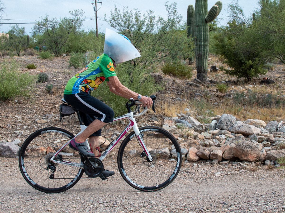 I will ride 20 miles on my bike wearing an e-collar to raise enough money to buy 100 comfy-cones for the Pima Animal Care Center (PACC). The average price for one is $20.I will be able to take the collar off after a couple of hours. Dogs can't. And some have to wear these collars for a long time.