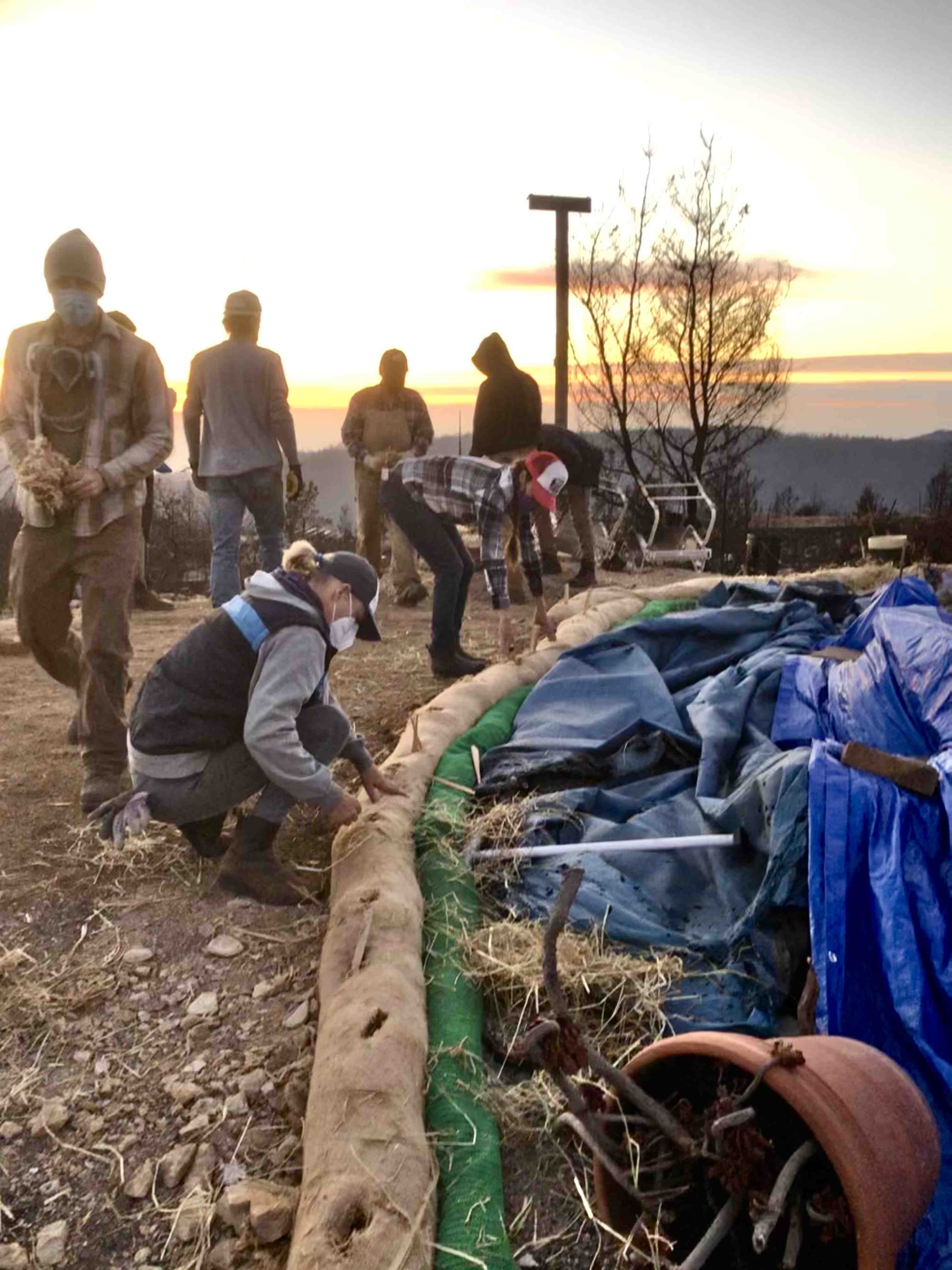 * Visiting burn sites where homes and human-made structures once stood, and placing biologically active wattles (sediment barriers) around the perimeter of the burned structures and vehicles