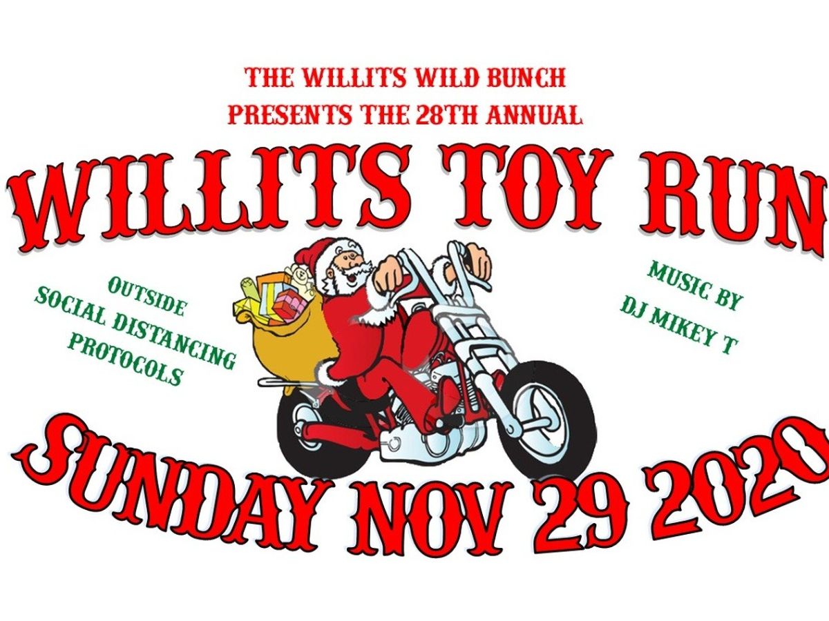The Willits Children’s Christmas Program is sponsored by the Willits Rotary Club and coordinated and co-sponsored by the Willits Wild Bunch, Inc. The Program is set up to assist needy families in the Willits area and to supply gifts of toys, food and clothing to children who would not have a Christmas without this program. During a normal year, the Willits Wild Bunch, Inc., sponsors and coordinates the Willits Toy Run which this year will be the 28th Annual Run. During a normal year The Run is attended by hundreds of motorcycle riders and members of the Willits Community. A large gathering is held at Little Lake Grange where music, food, a huge raffle and a live auction take place. Toys are donated by the attendees and money is raised through the raffle and auction. But this is not a normal year…The Run will take place with modifications…It will be held outdoors and social gathering protocols will be in place at a Toy Drop Off location.