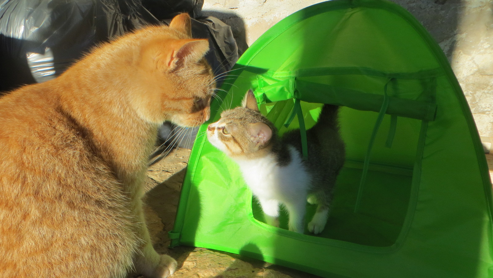 Für das kleinere bereits aufgestellte Außengehege aus Stabmattenzaun fehlt ein Überkletterschutz, damit die Kätzchen nicht auf die Straße laufen können. Wir haben noch ein zweites gespendetes Außengehege im Garten stehen, für dessen Aufbau bislang das Geld fehlt. Momentan sind die Kätzchen notdürftig im Haus auf dem Dachboden untergebracht. Dort finden sie warme Plätzchen in Unterständen aus Styropor und einer Wärmelampe. Aber der Winter hat gerade erst begonnen und es wird noch viel kälter werden.