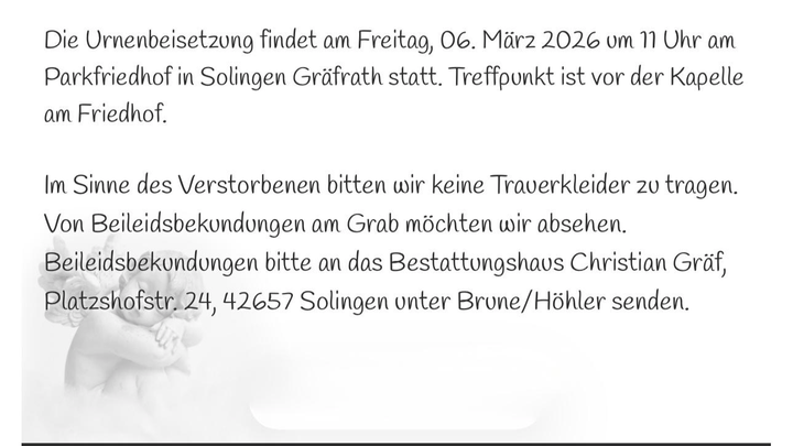 Update: danke an alle die gespendet haben. Gernod wird nach Solingen kommen und hier bestattet werden. Es wird eine kleine aber herzliche Beisetzung.