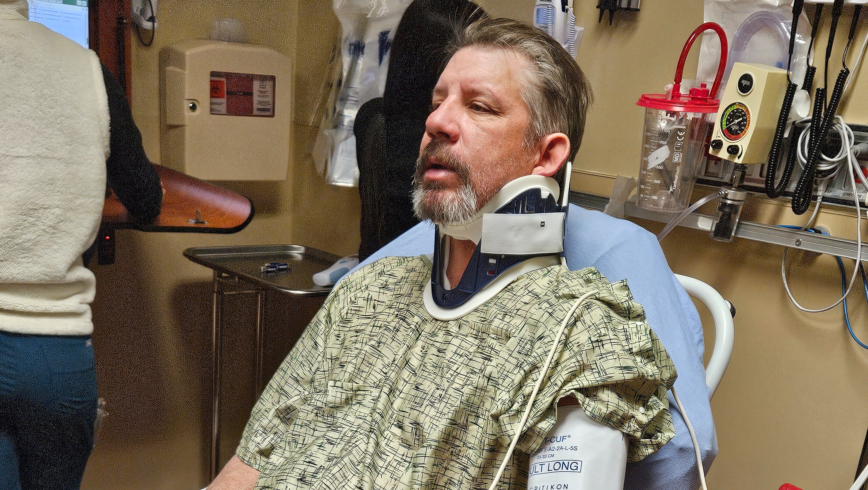 Tim the Tree Guy was rear-ended. He has a fractured spine and his work truck was totaled.