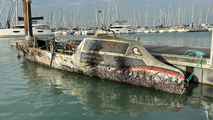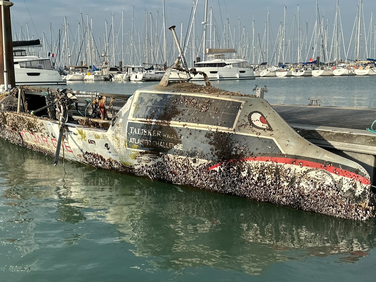 In short: In Woobie's third crossing, the 2022 team suffered a strong storm that inverted the vessel and she failed to self right so the team abandoned her and was miraculously rescued after Woobie was set adrift. On December 11, 2025, just 17 days short of three years, she was recovered in France where she waits. Now, efforts are underway to bring her back to Mobile.