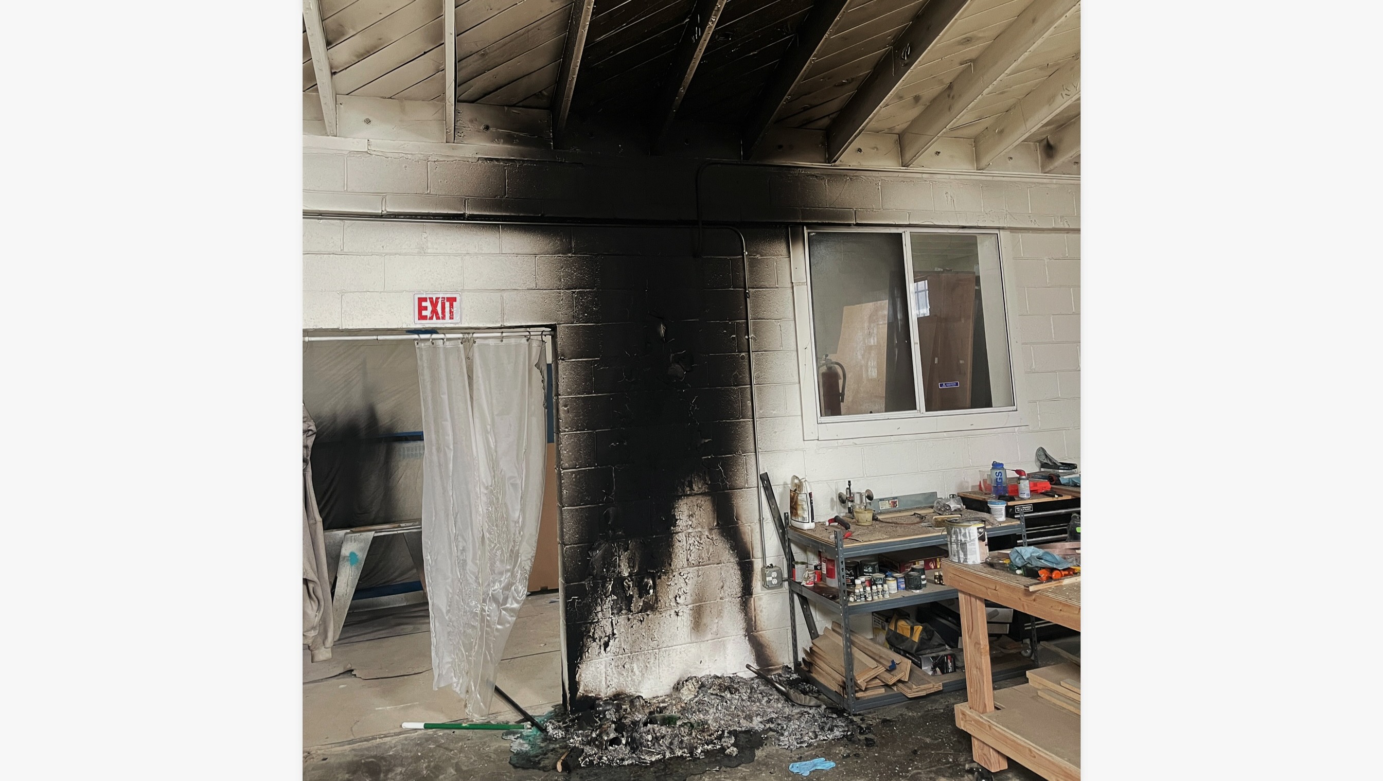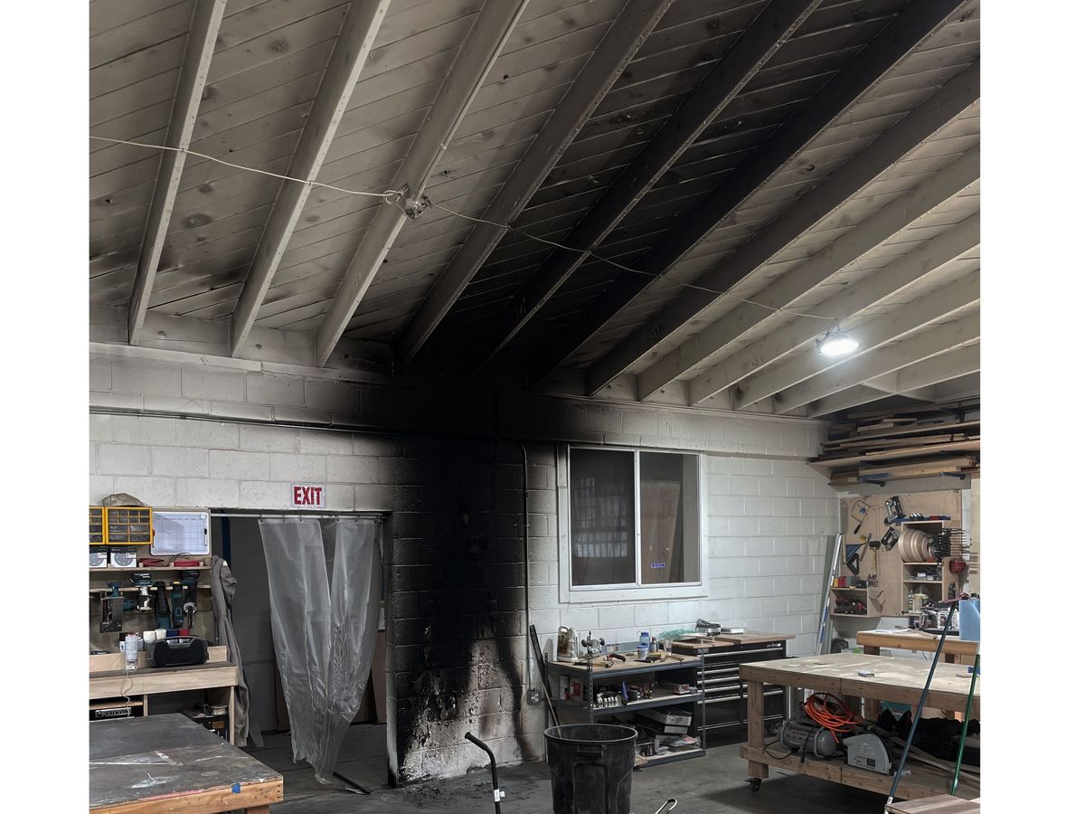 Late Friday night, a trashcan caught fire burning all of the contents in and around it. Fortunately, the fire extinguished itself before potentially setting our whole shop on fire. Unfortunately, the smoke from the fire left toxic soot embedded in all surfaces of the studio.
