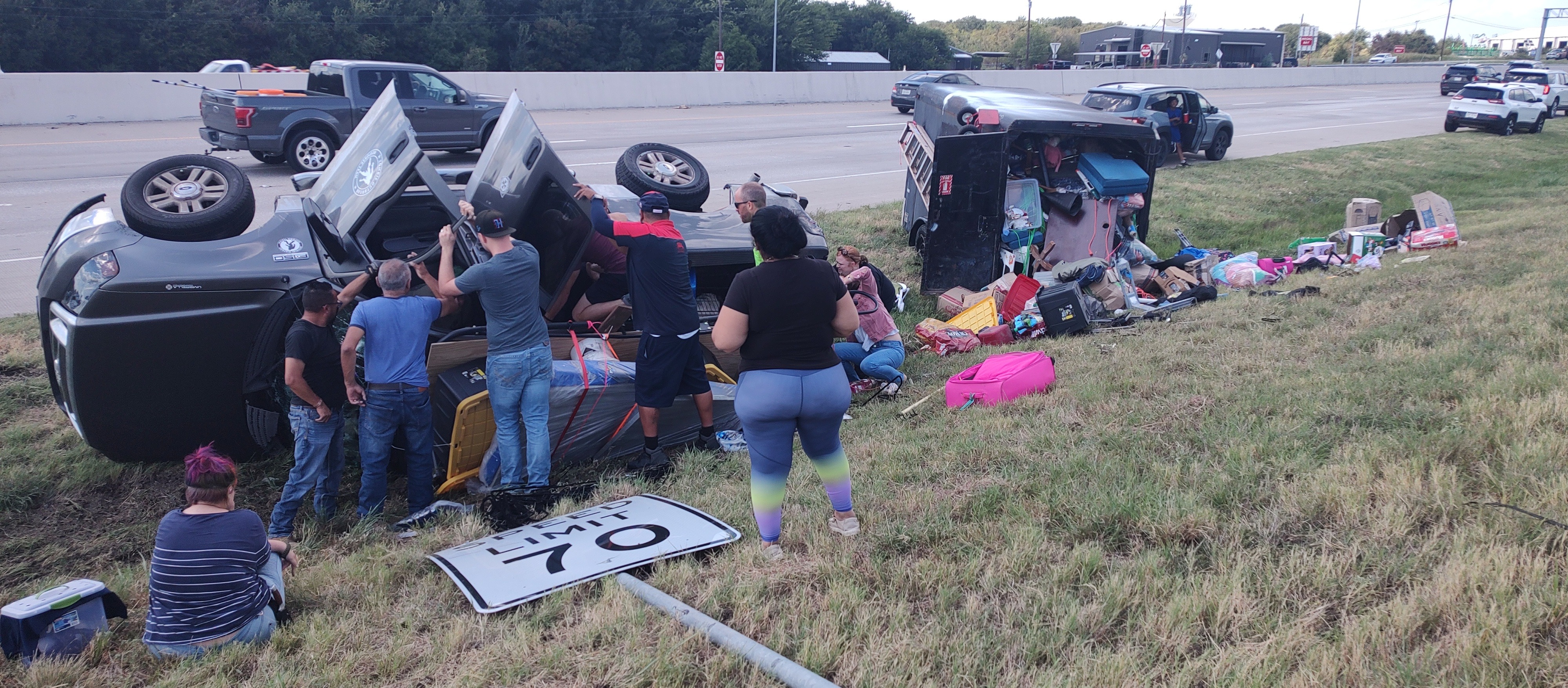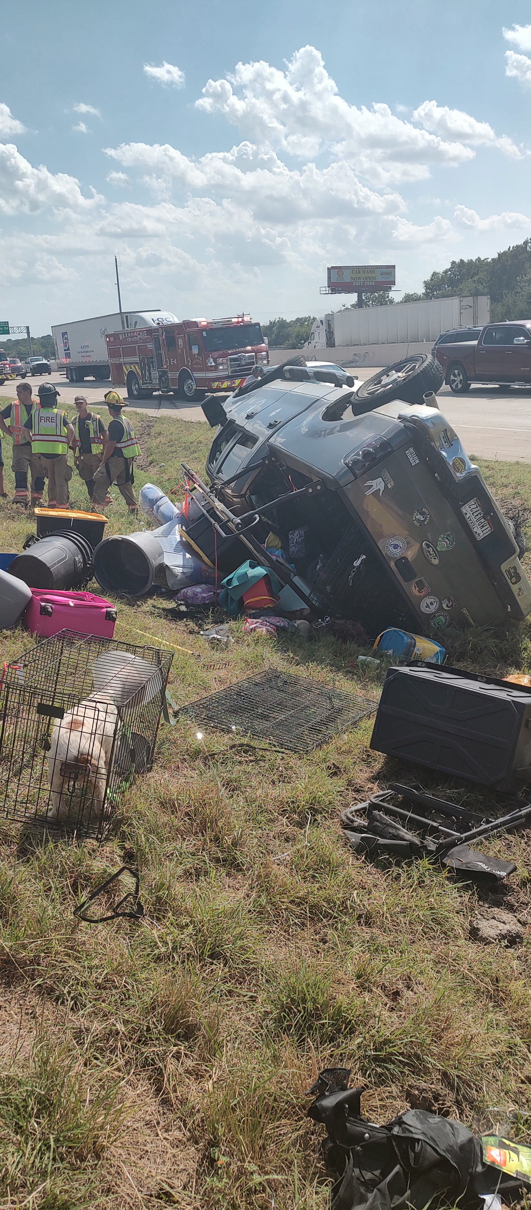 Thanks to everyone who has donated we were able to buy the house in New York and hit the road. We made it 2-300 miles and had a horrible accident. Ian was driving our truck with the trailer and all of our animals and the tire popped, causing him to lose control and rolling onto the side of the road. I was behind him in the car with all the kids and watched the whole thing. Thank goodness everyone was fine, including all of our animals. One of our cats ran out of the car because his carrier opened in the wreck and we are still looking for him.