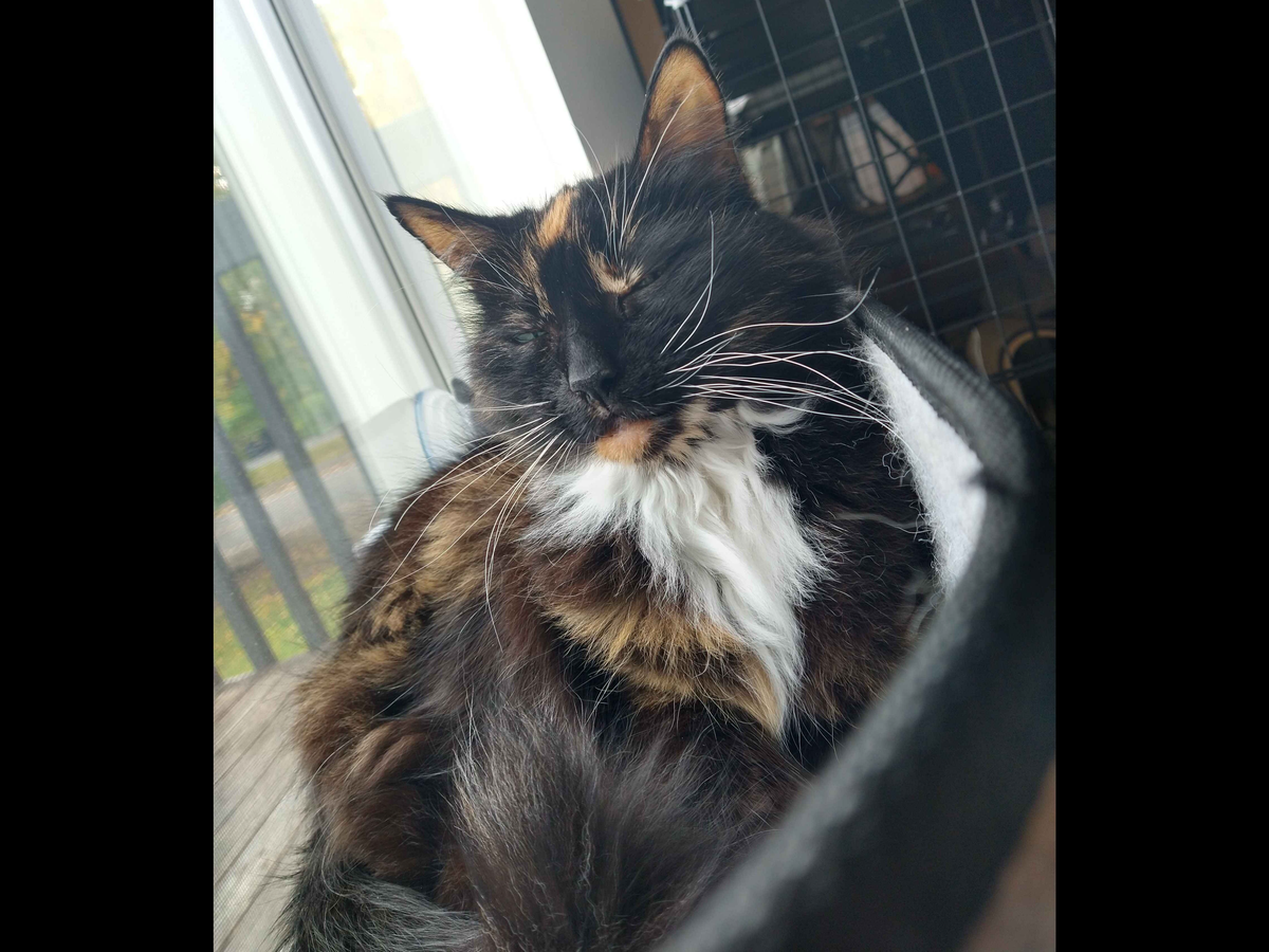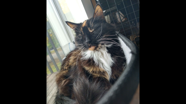 Kahlua is a 13-year-old kitty that we adopted when I was 13 years old. She has moved around with me a lot in recent years as I find where to settle in early adulthood.