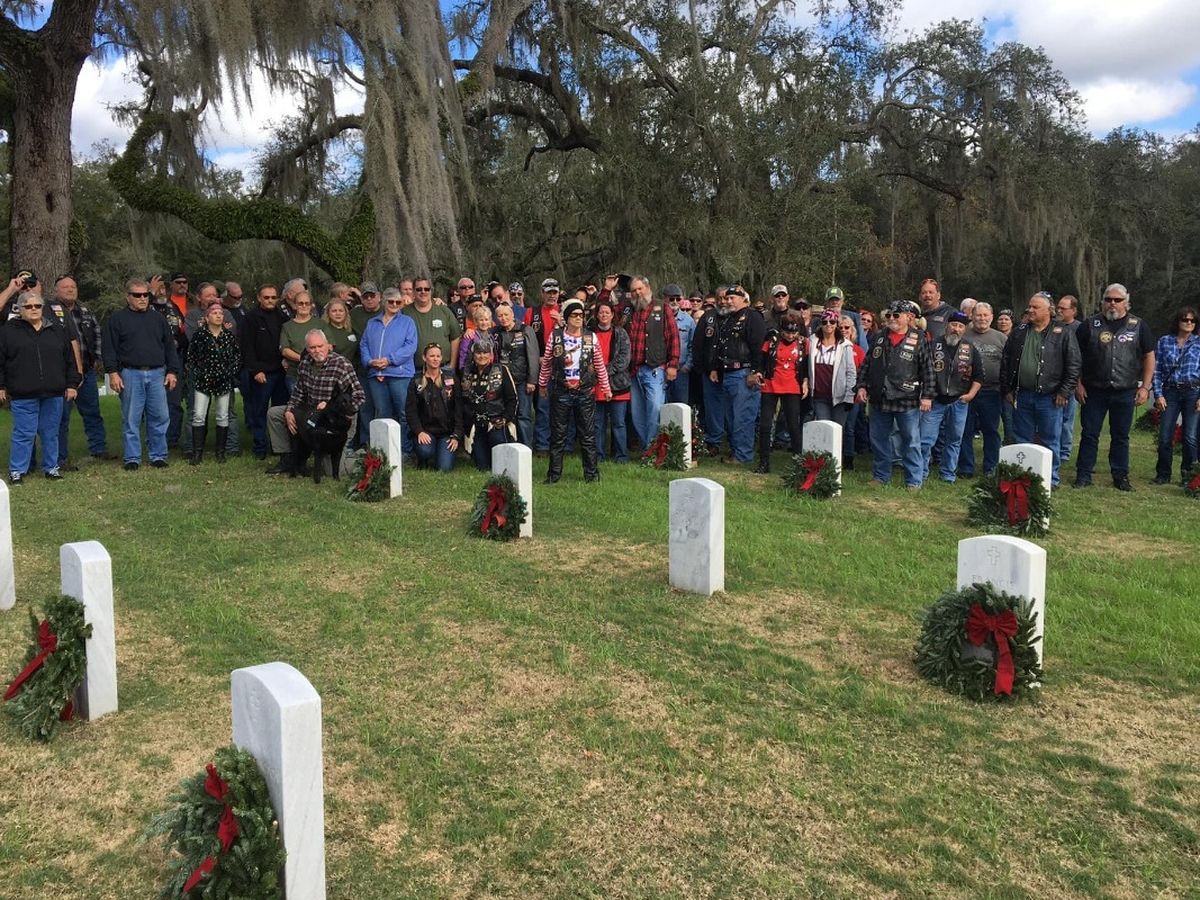 American Legion Riders Post 237 in Florida, raise money each year to honor our veterans at Florida National Cemetery in Bushnell, Florida.  The National Wreaths Across American does not place a wreath on every grave.  We feel no grave of our brave veterans should go undecorated.  Last year we were able to place 901 additional wreaths.  This year our goal is 1000.  We would appreciate your support for this worthy cause.  We are a 501(c)3 charitable organization so all donations are tax deductible.