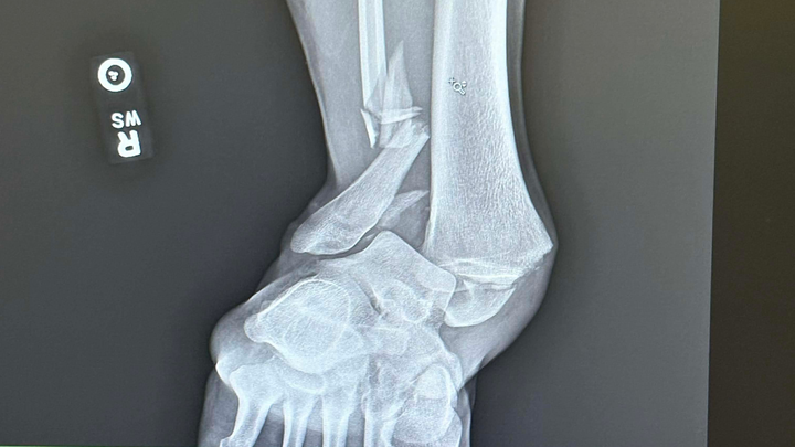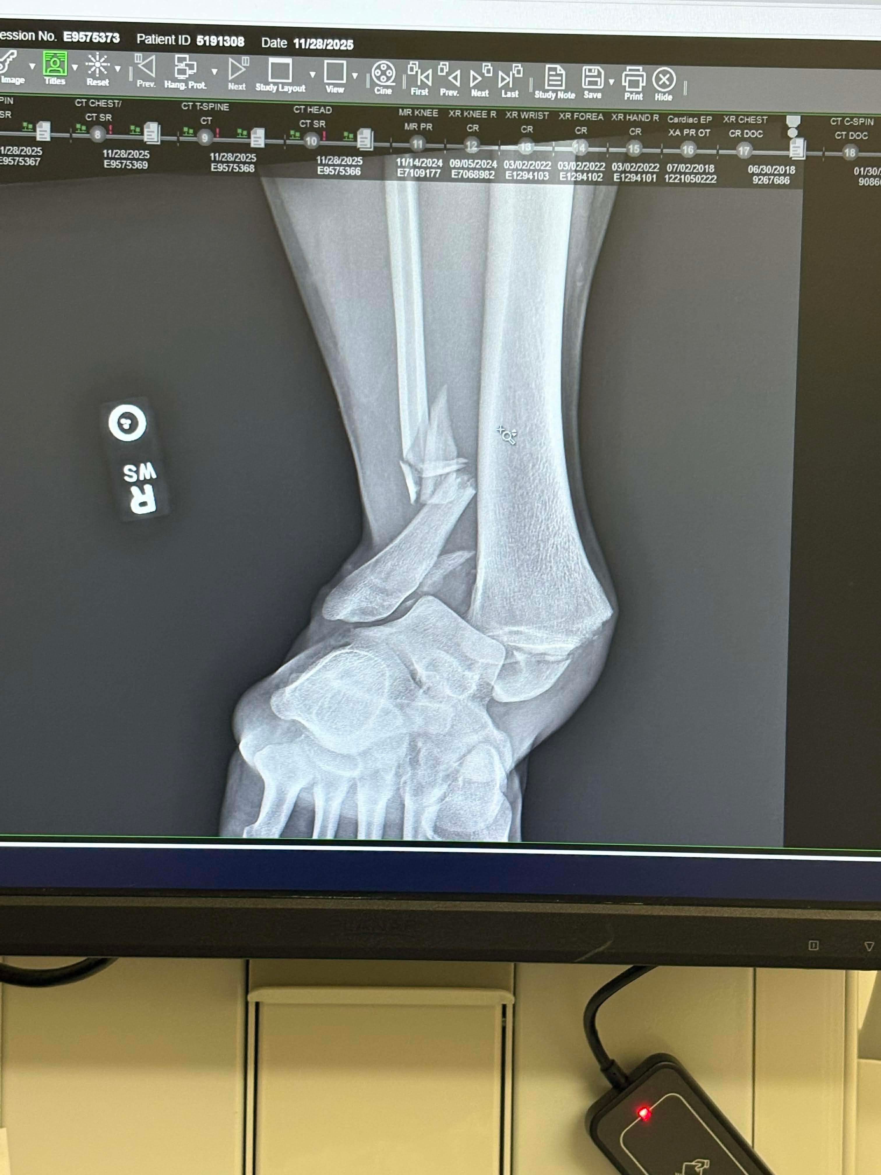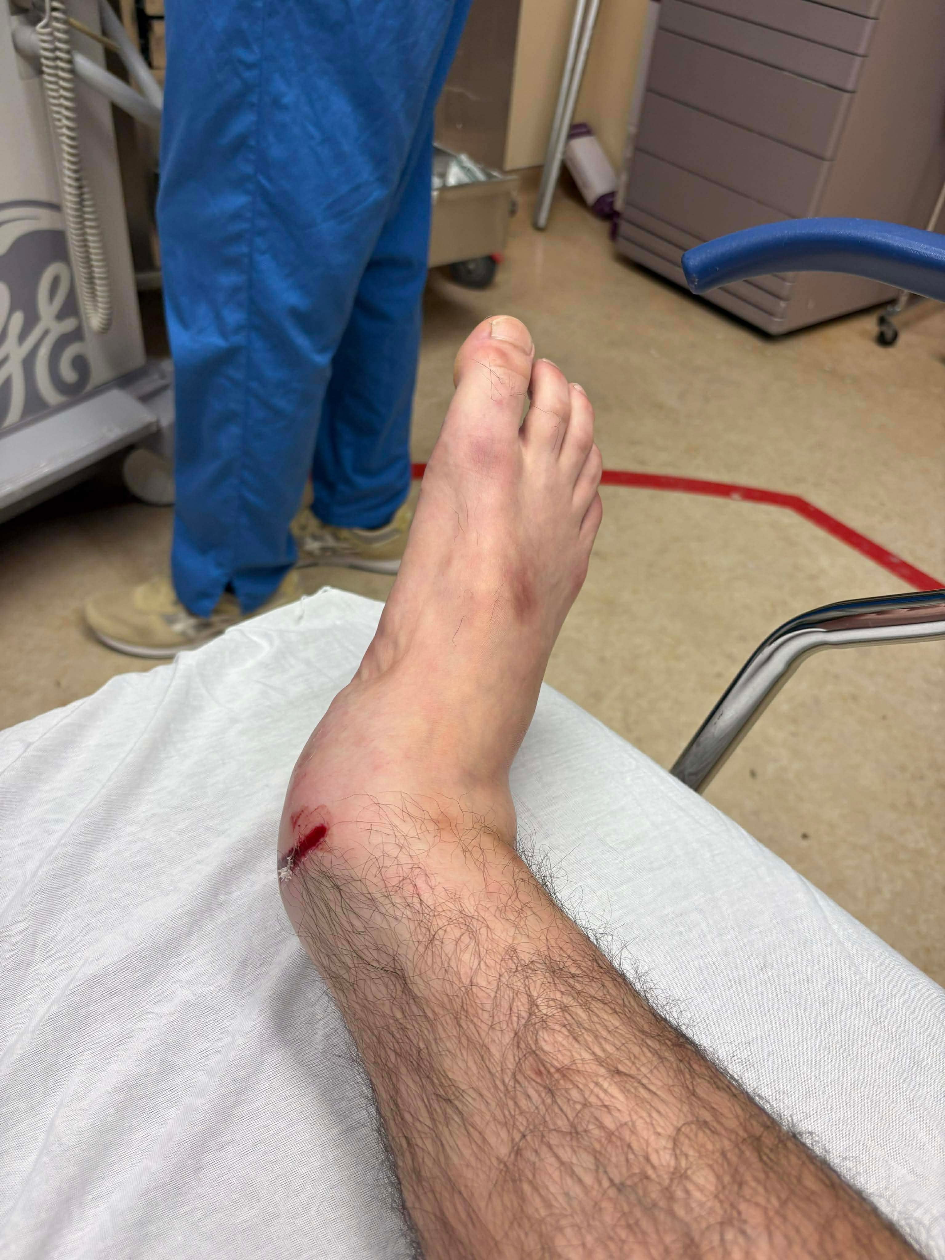 Ended up losing traction while driving in the snow and hit a tree. I broke my tibia, fibula, and ankle bone, gashed my eyebrow open (needed six stitches), broke some ribs, and bruised both lungs.