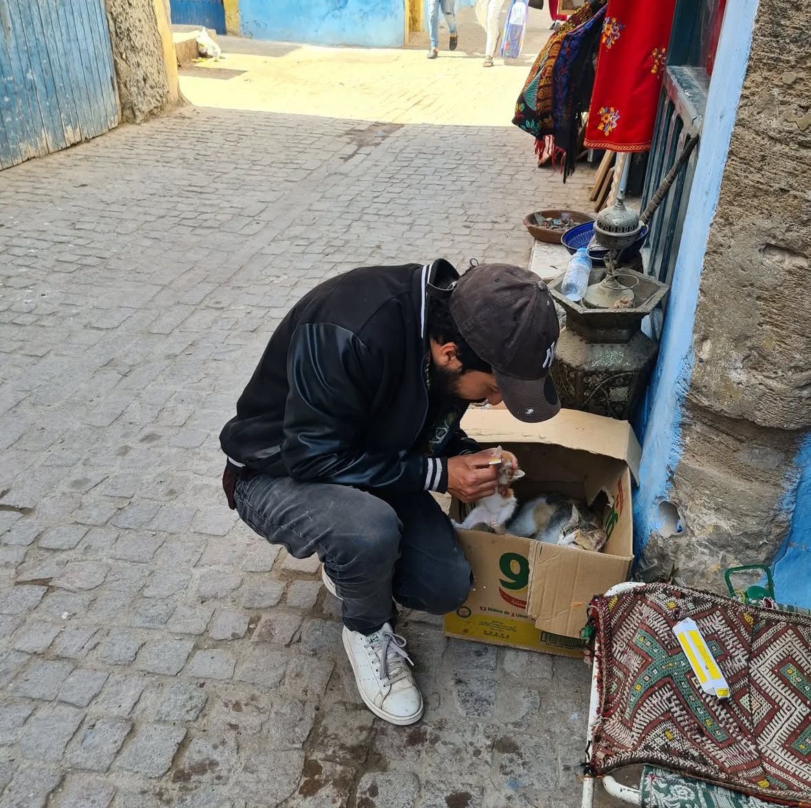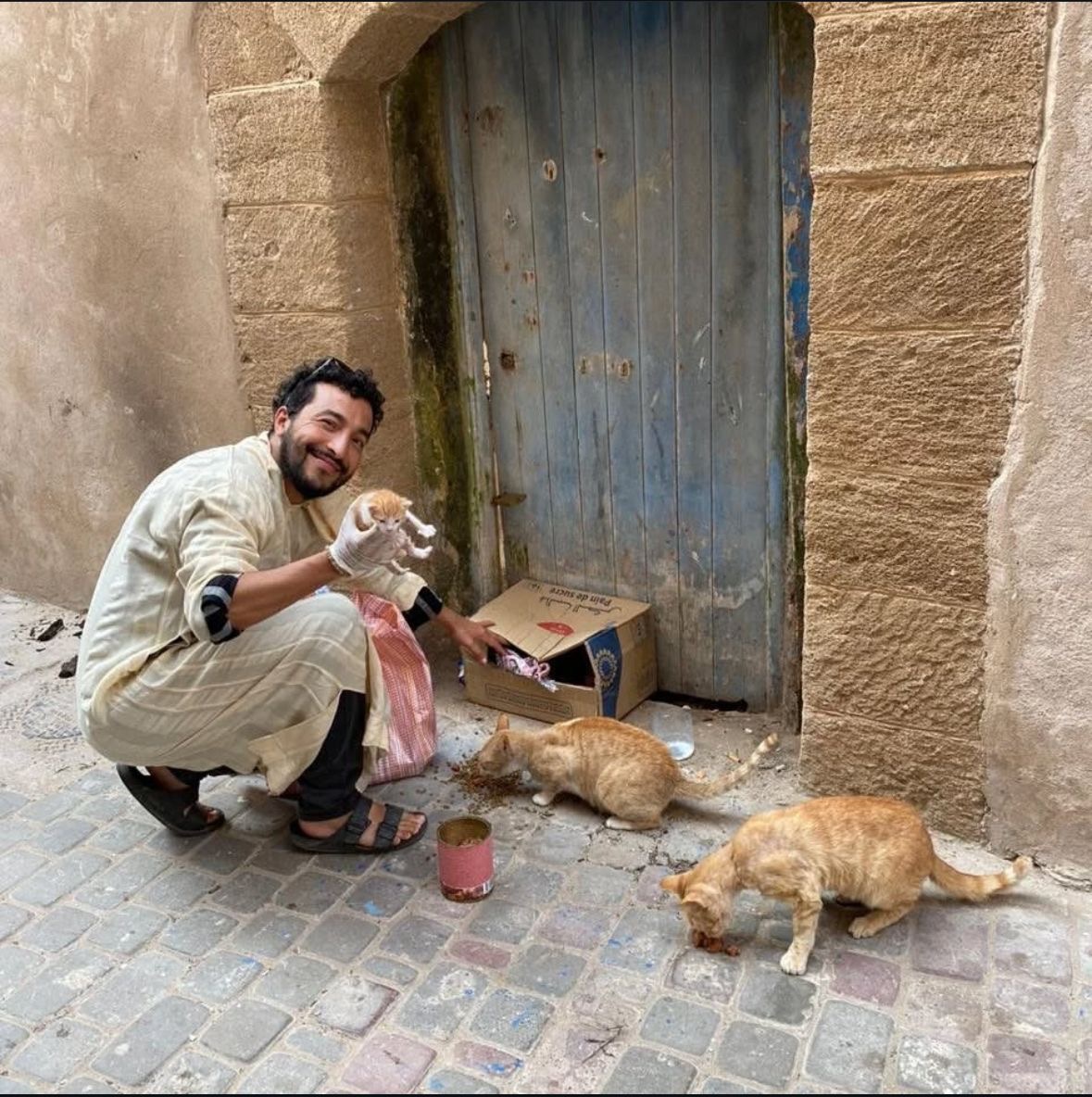 Mr. Zaki from Essaouira, Morocco, dedicates his life to caring for stray cats and dogs. Every day, countless animals in this city die from hunger, thirst, and disease. Thanks to his compassion and commitment, many of them find food, shelter, and medical care.
