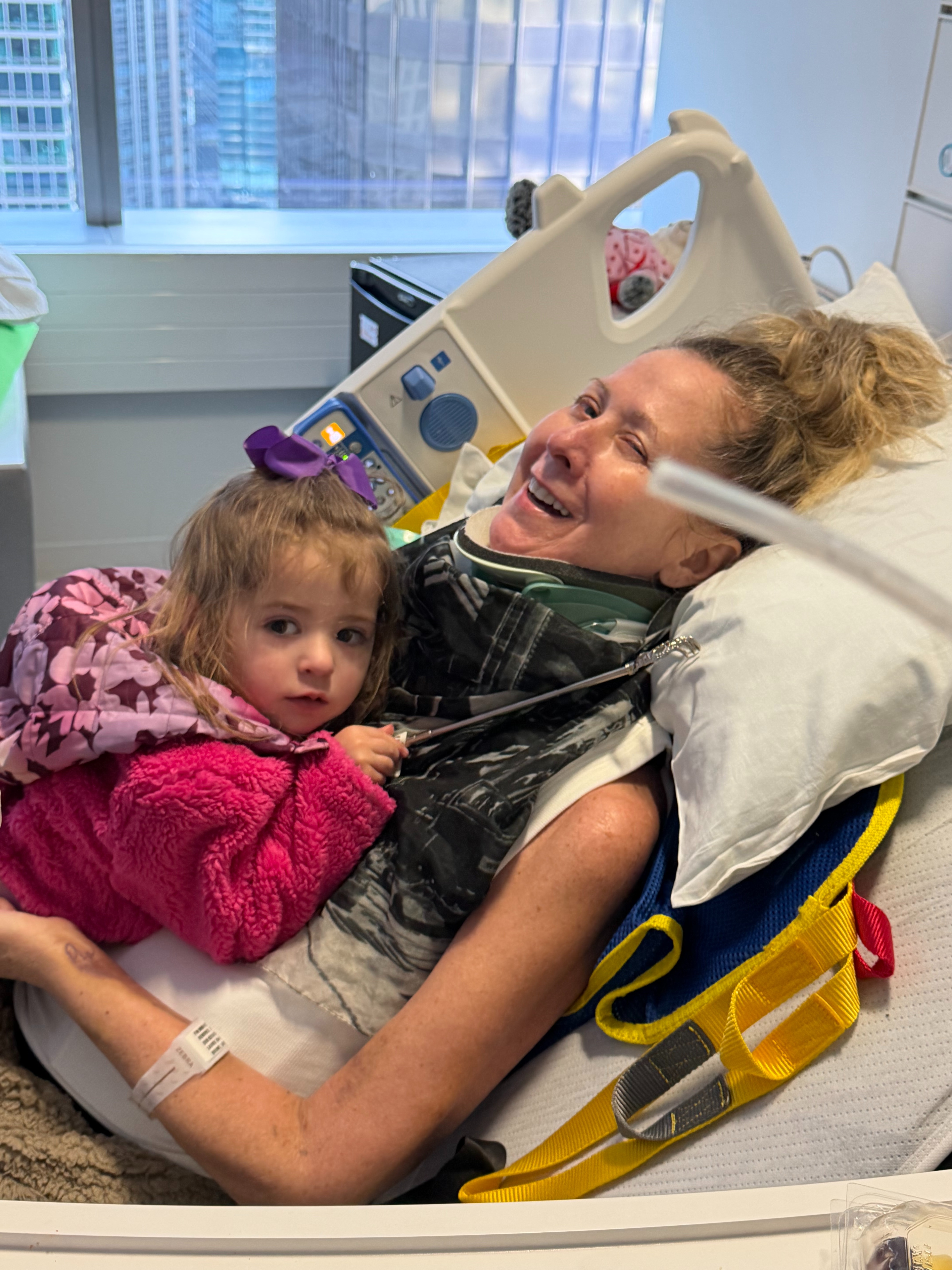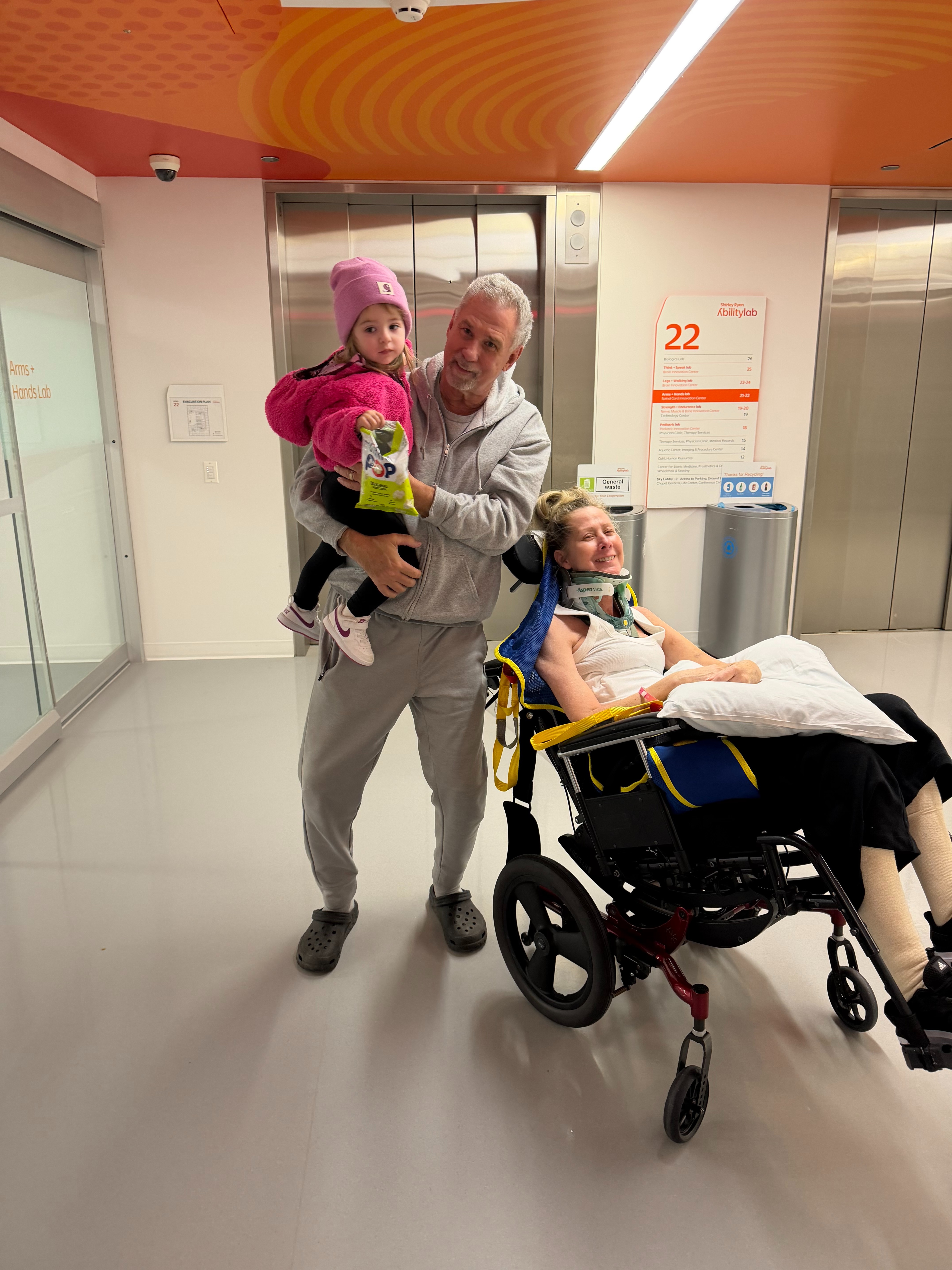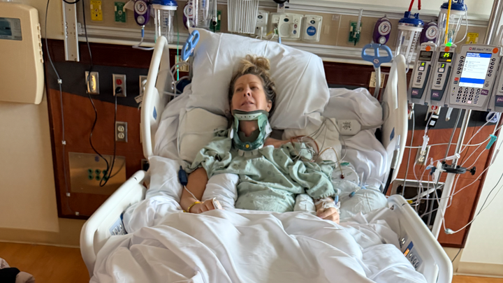 On Christmas Day, our world changed forever. After years of chronic pain and worsening symptoms after what should have been a simple shoulder surgery, she suddenly lost feeling in her legs and was rushed to the hospital. Doctors discovered a large tumor compressing her cervical spinal cord, requiring emergency, life-saving surgery.