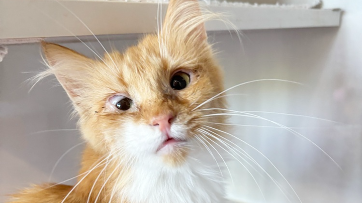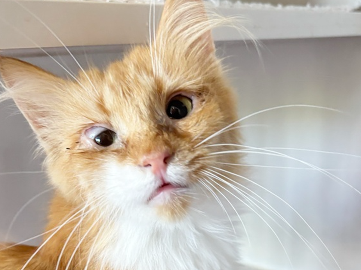 I’m still just a kitten, but my life has been really hard so far. I grew up in a big, crowded barn with lots of sick cats, and my eyes hurt every single day. My right eye was the worst — it felt tight and pulled down, and I couldn’t open it all the way. I kept bumping into things on that side because I couldn’t see properly, but I didn’t know why.