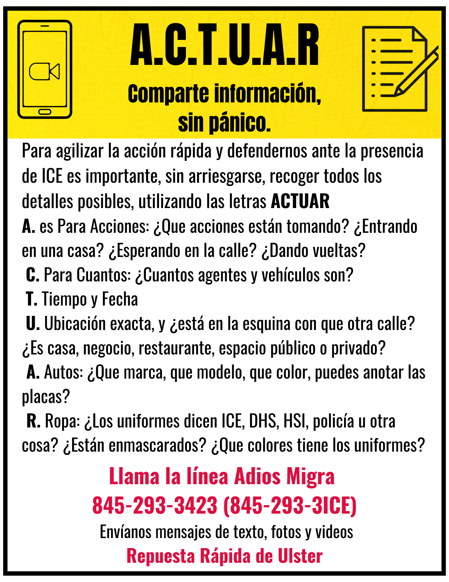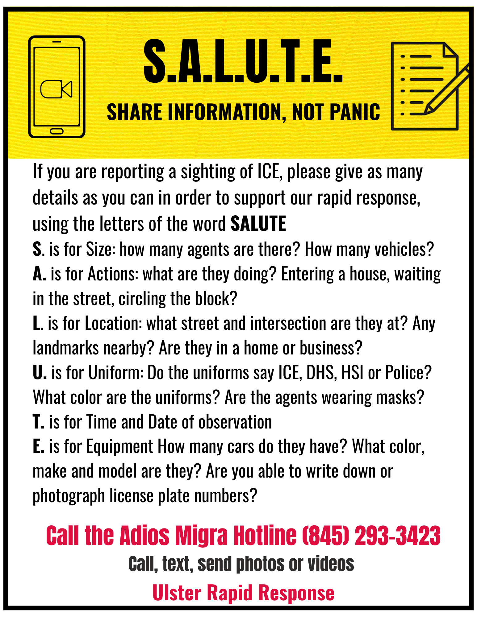 Rapid Response: ICE watch, court watch, a hotline to report suspected ICE/federal immigration activity, and providing accurate information, dispelling rumors, and sharing verified updates quickly when ICE is confirmed