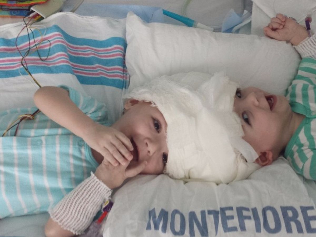 And this is just chapter 1. In the next year, the boys will undergo a series of surgeries to slowly reroute the blood flow between their brains. This will hopefully provide each boy with adequate blood flow to each separate brain. They will do a craniotomy for each step and clamp off various veins to control the blood flow to each brain. Then they will insert tissue expanders under the boys scalps and slowly fill them with saline to stretch their skin so they have enough to cover the area after separation. Then, the separation and reconstruction surgery takes place.