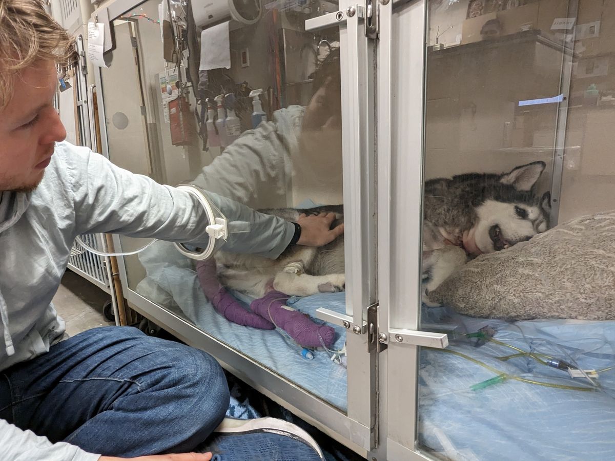 Brandy is hospitalized at the VCA Alameda East Veterinary Hospital critical care unit for burns in her tongue and esophagus following exposure to a caustic chemical, as well as aspiration pneumonia. Her care is intensive and will require careful follow up, but she's fighting her hardest to come home. During her visit, she's needed IV medications for pain and infection, a tracheostomy, supplemental oxygen, and a tube for nutrition.