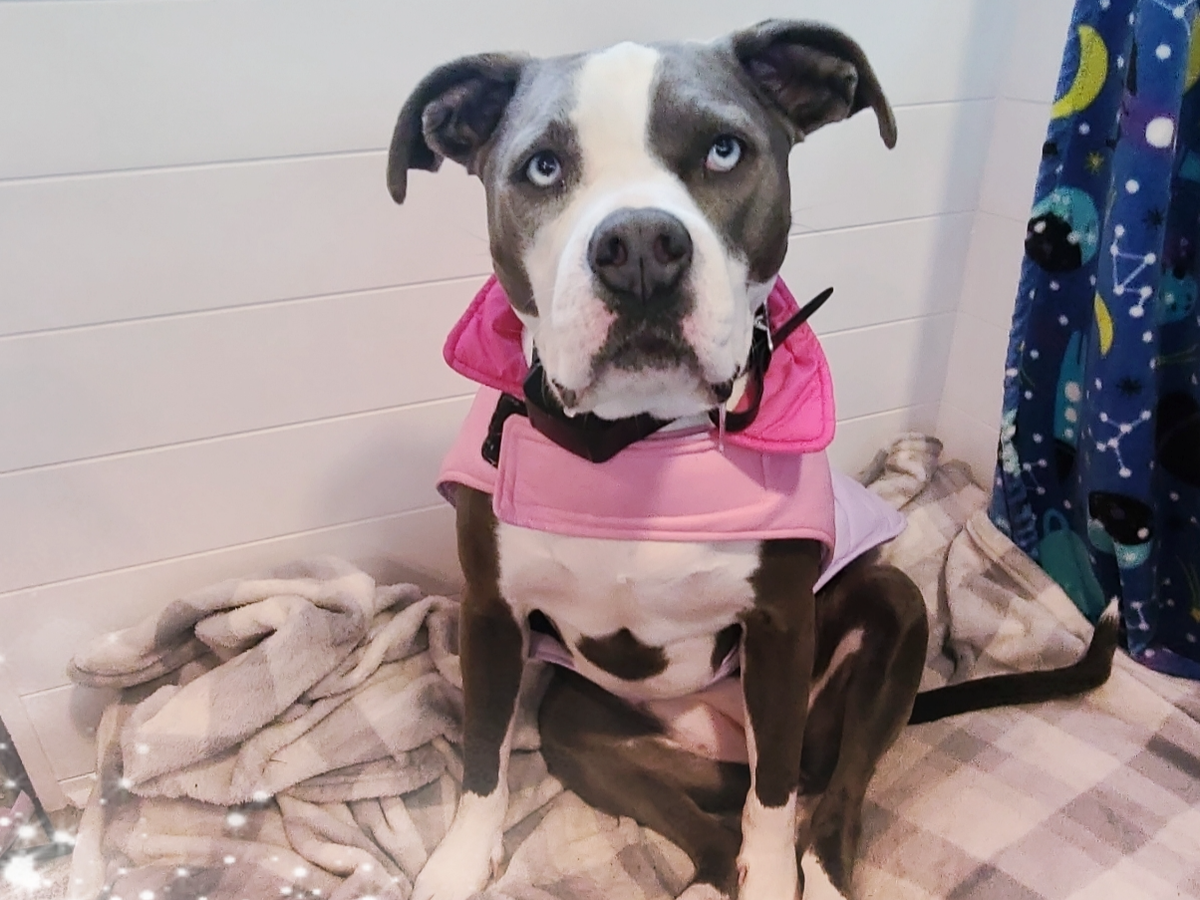 My name is Moon. I'll be three years old in May. I'm the sweetest pitbull ever and I love everyone I meet. Even the wild cats in our neighborhood.