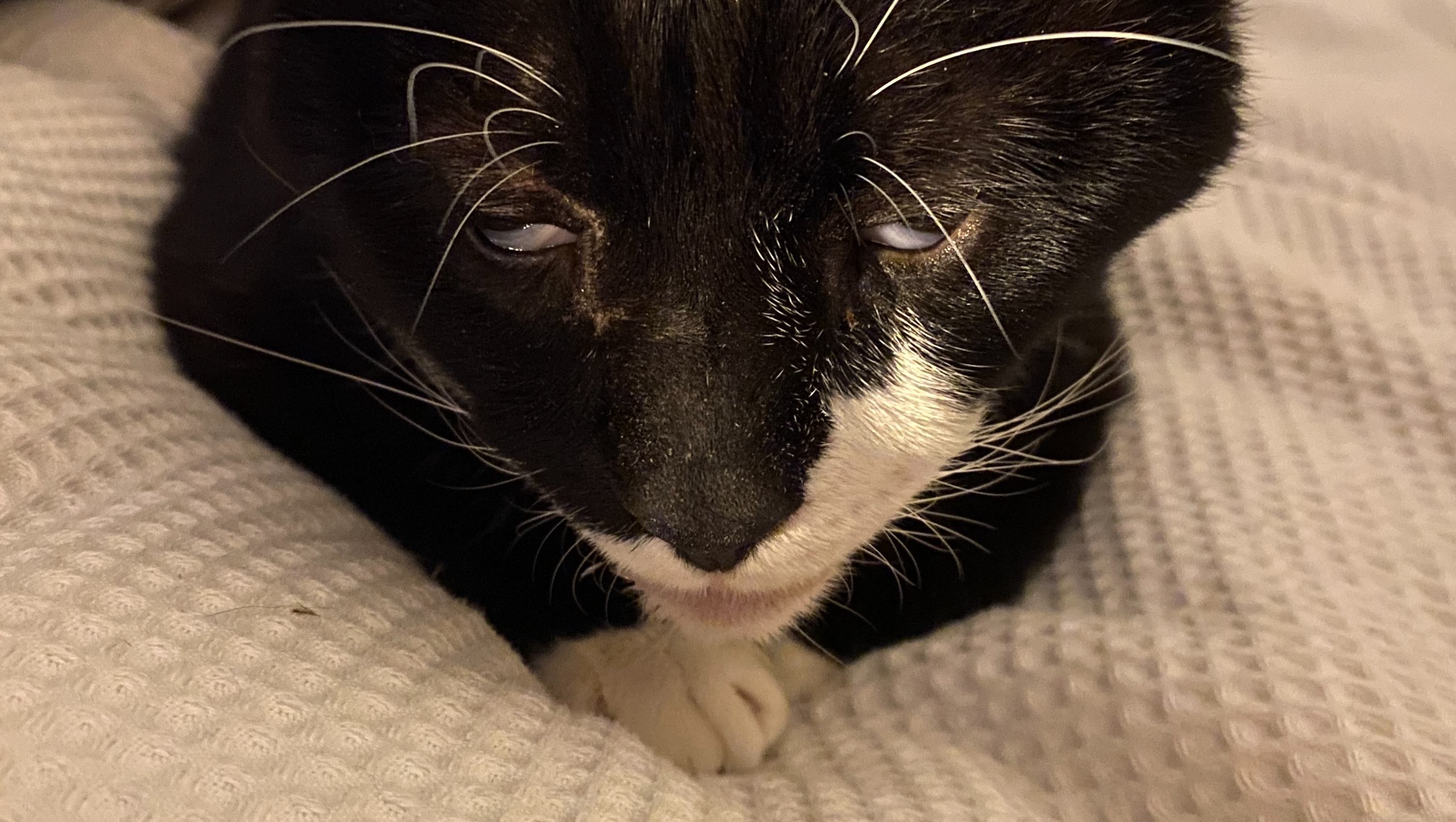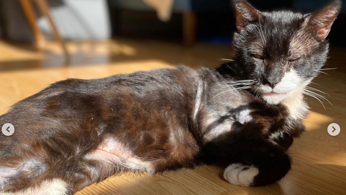 A rescue from the streets of Marcy Housing in Brooklyn [see his story ,] Gus survived an entire year outside before he was rescued in April by some fierce and tireless women trappers who have taken on the kitten explosion and surge of discarded cats throughout the pandemic.