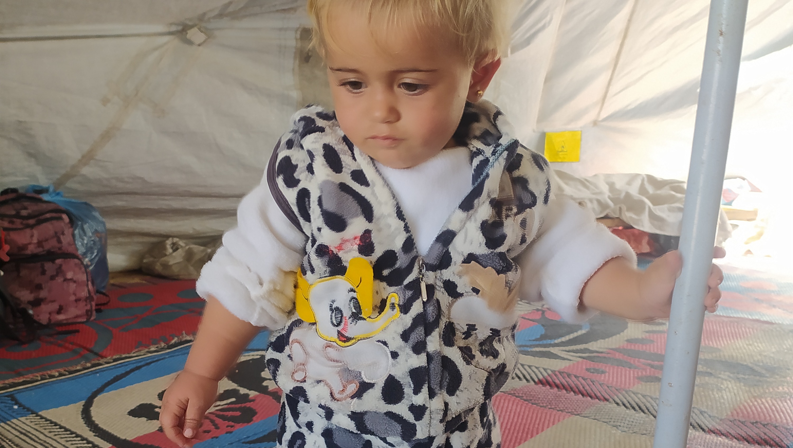 Safaa : she lived in extreme suffering in the tents due to the loss of shelter and the lack of milk, food, hygiene items, children's toys, medicine and vaccinations. She also suffered greatly from fear due to the continuous bombing, which led to her feeling unsafe.
