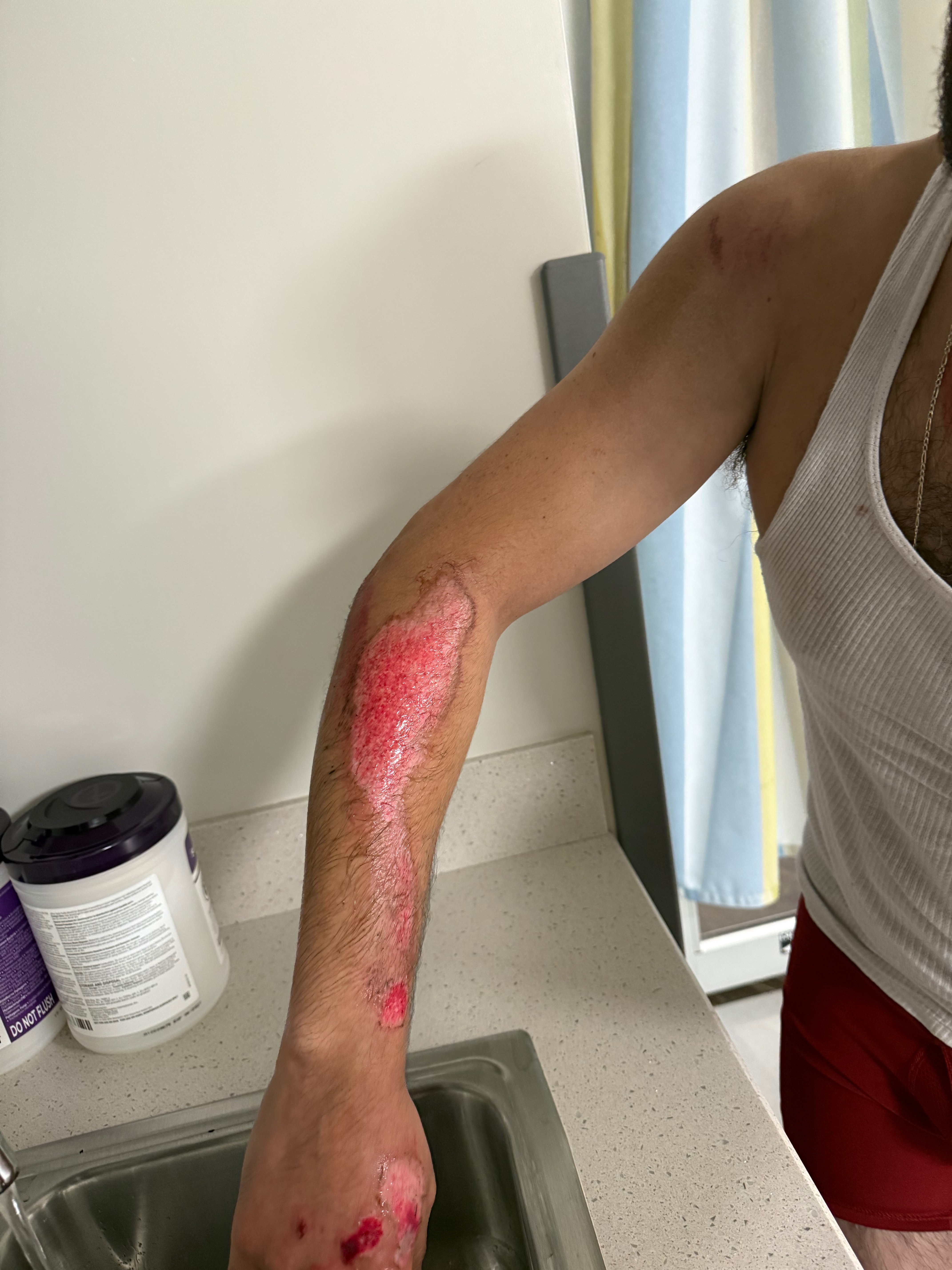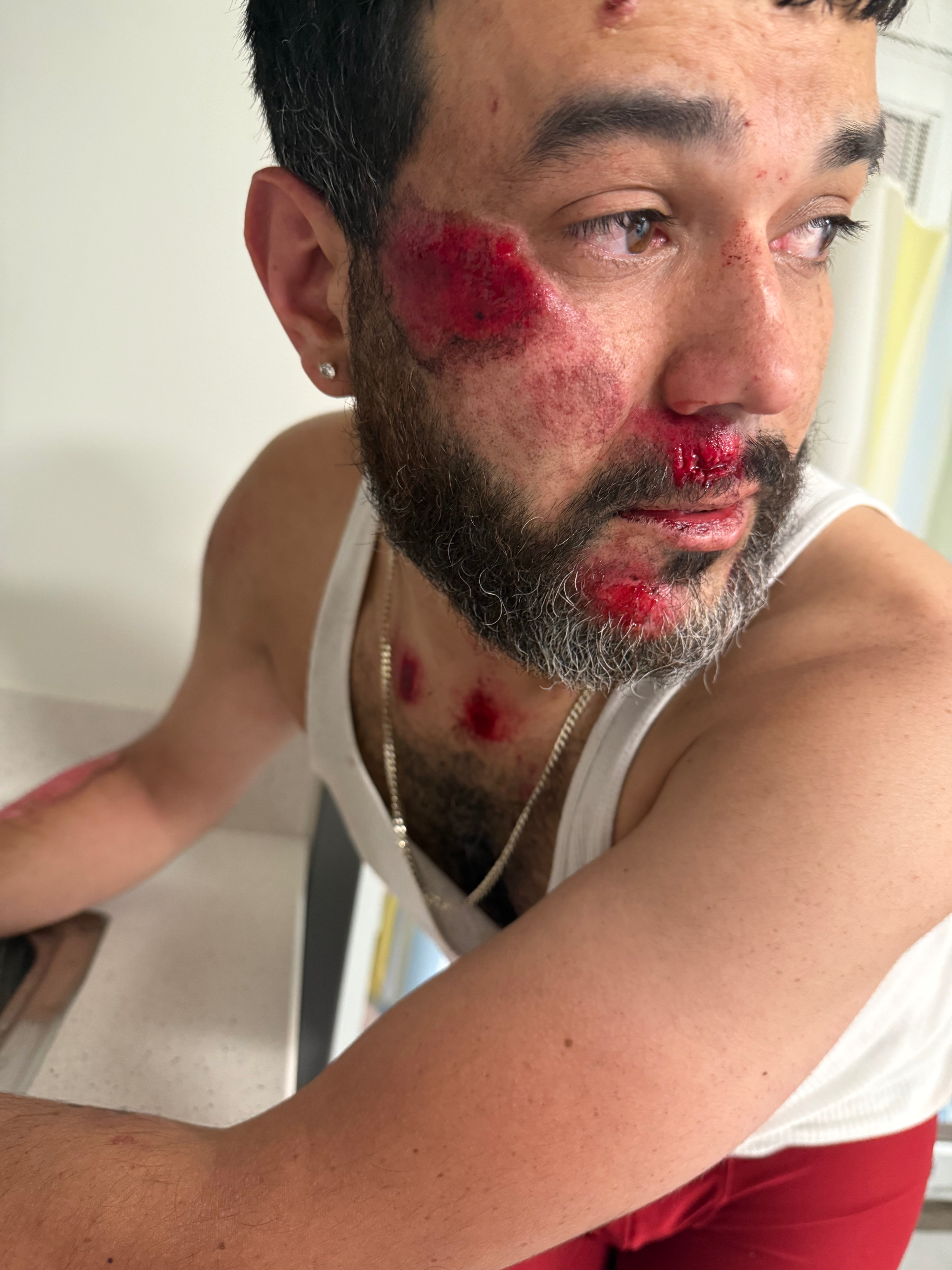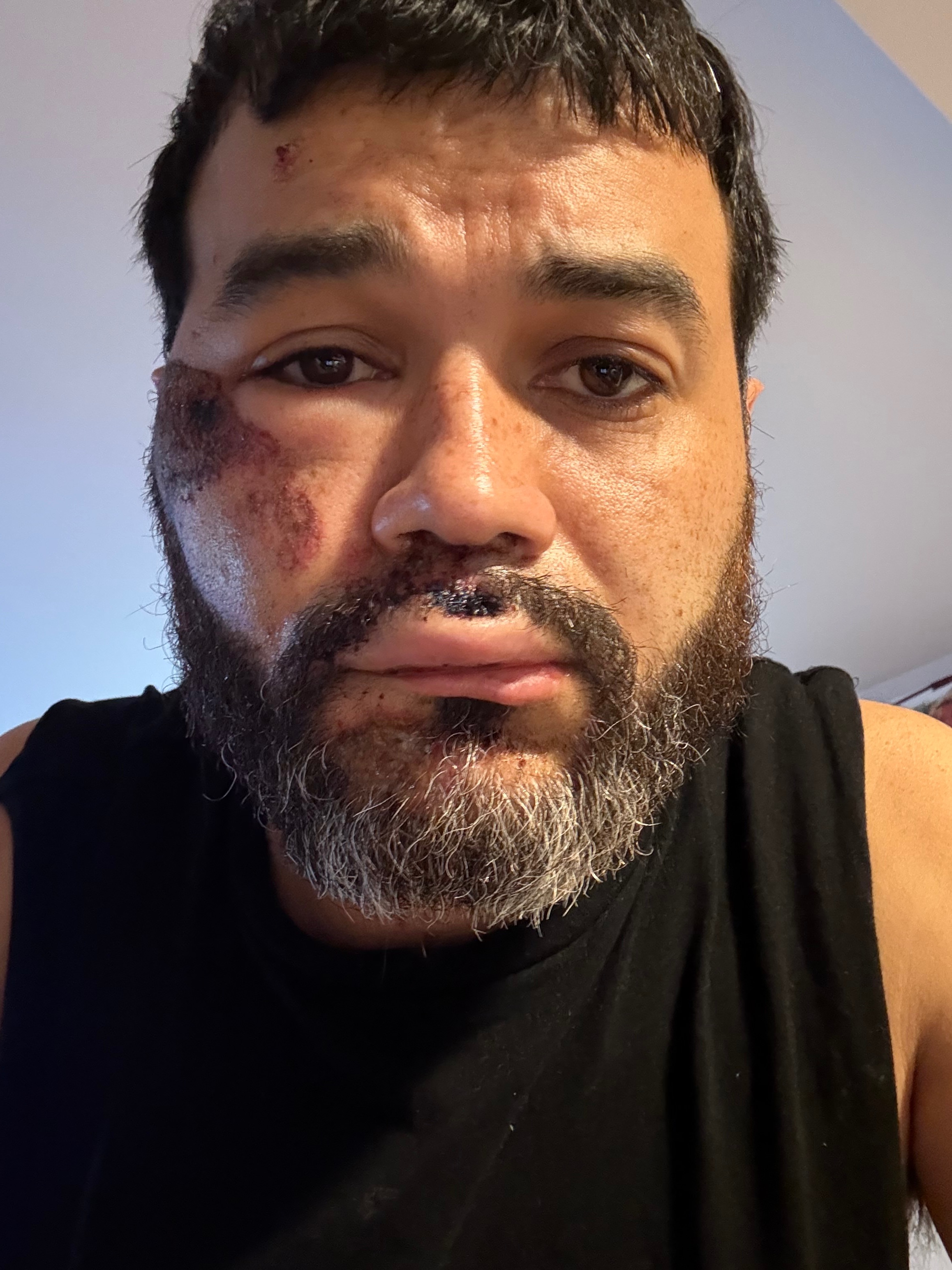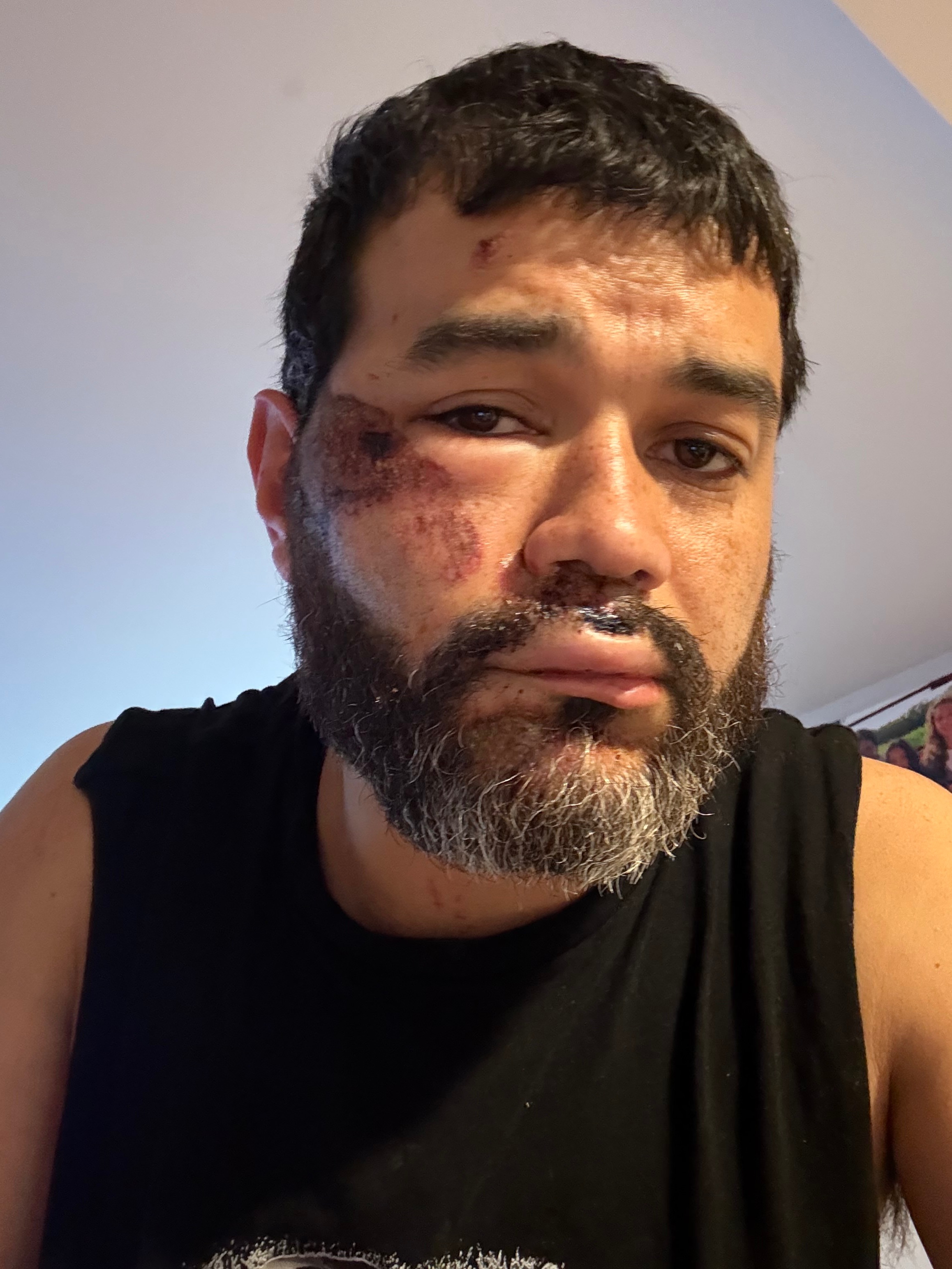 protecting my family and a tow truck driver was very negligent and stepped on his gas while I was face-to-face with him which led to him dragging me on the road.