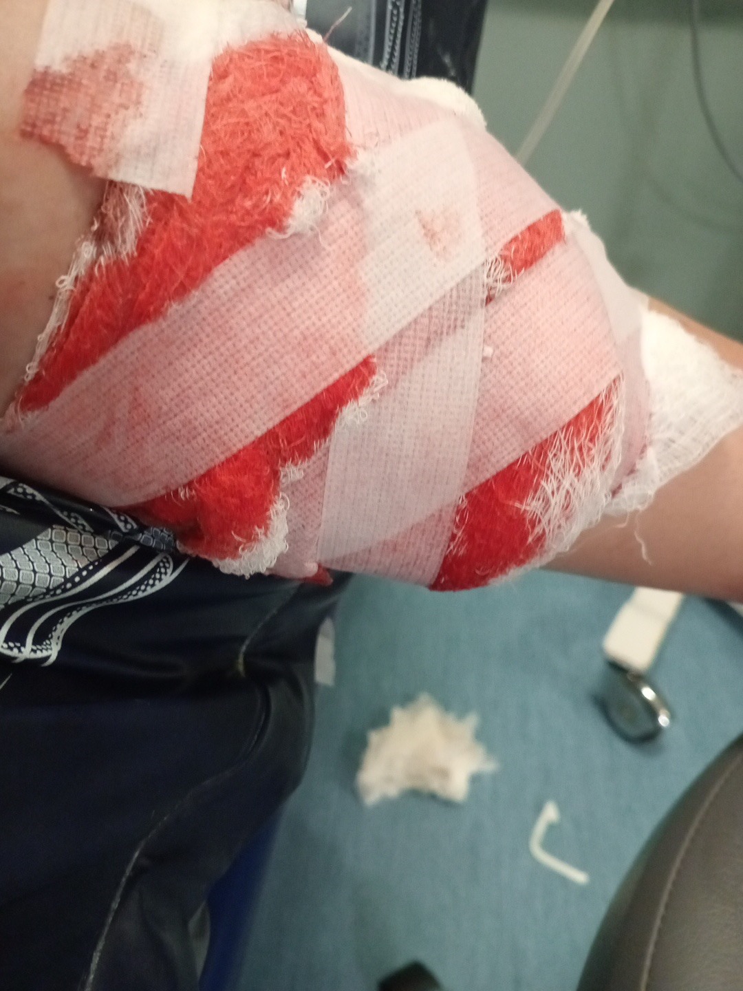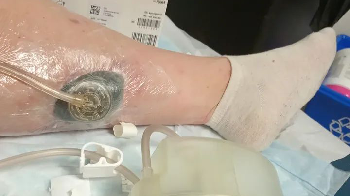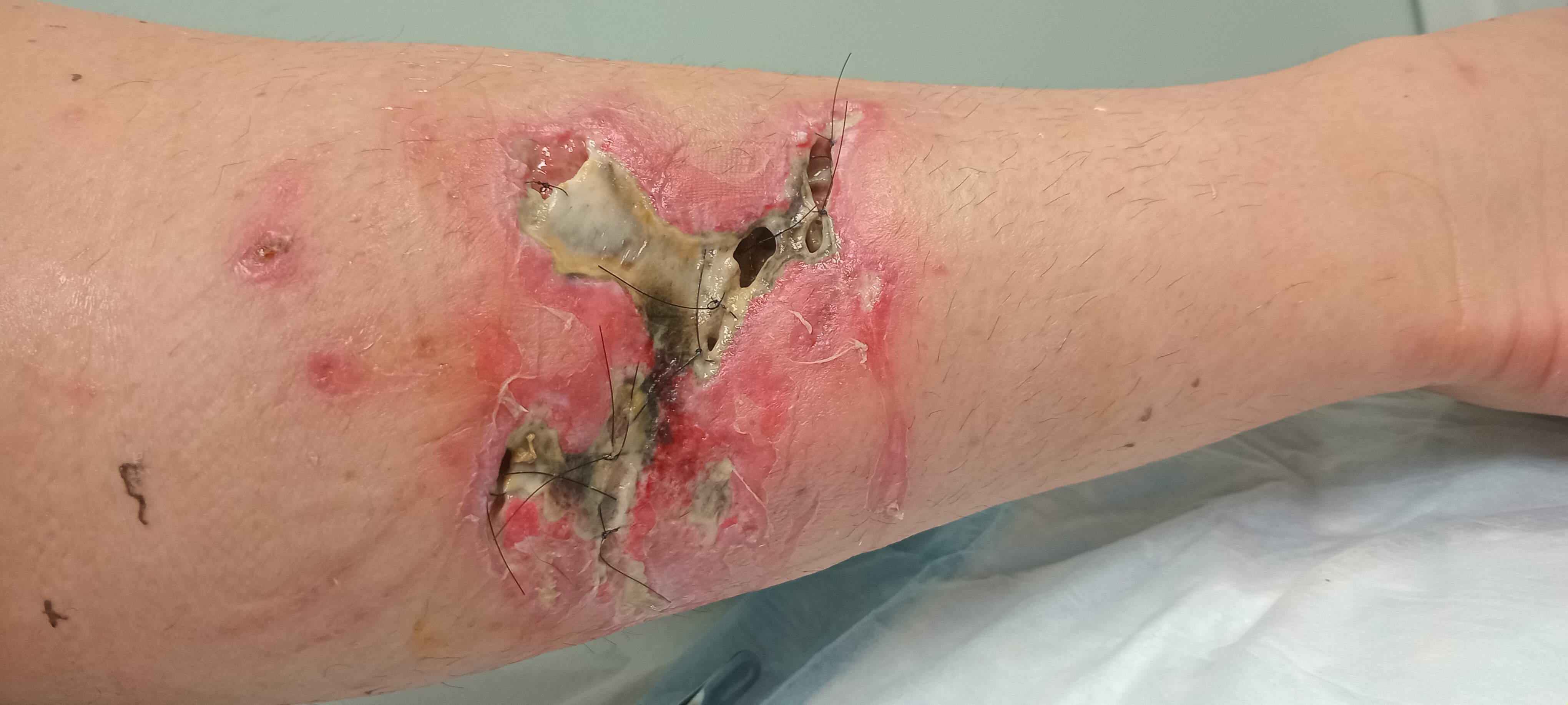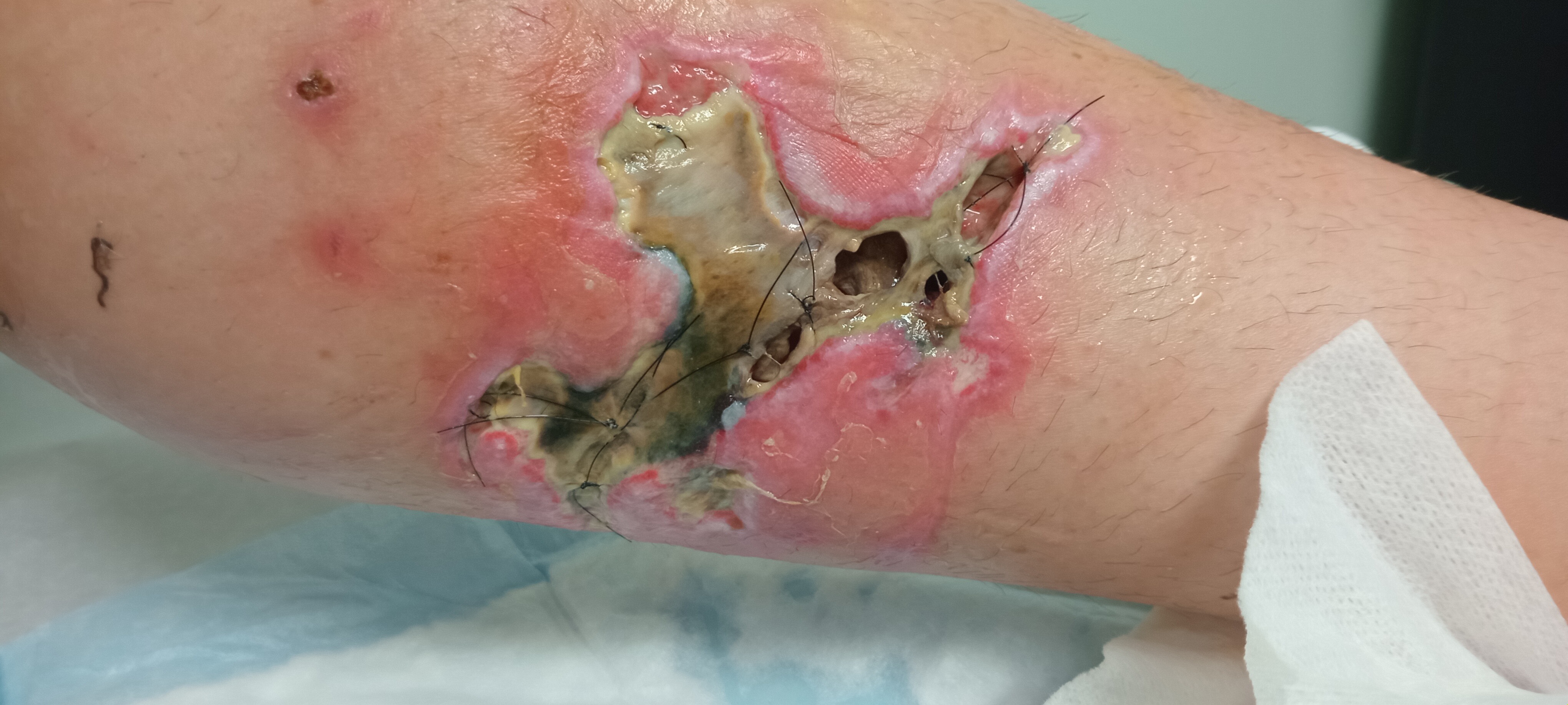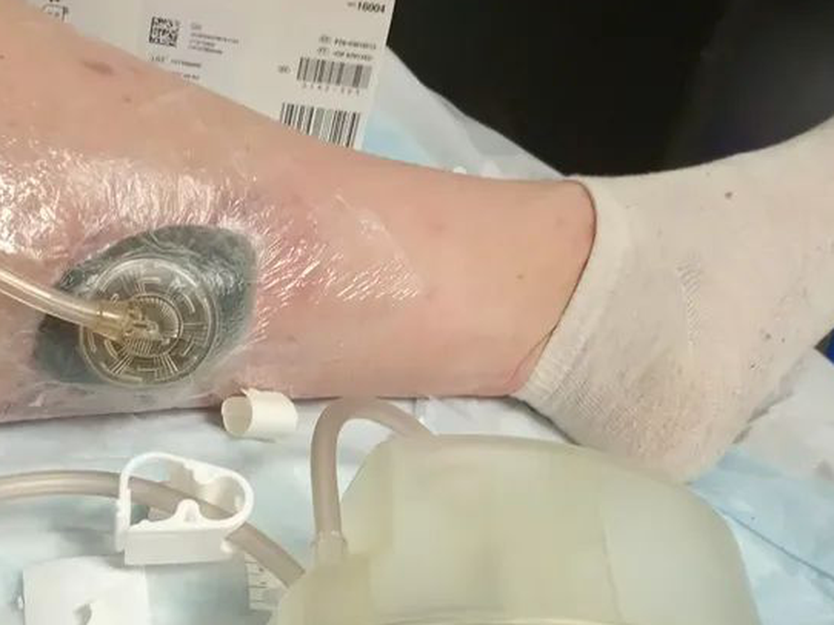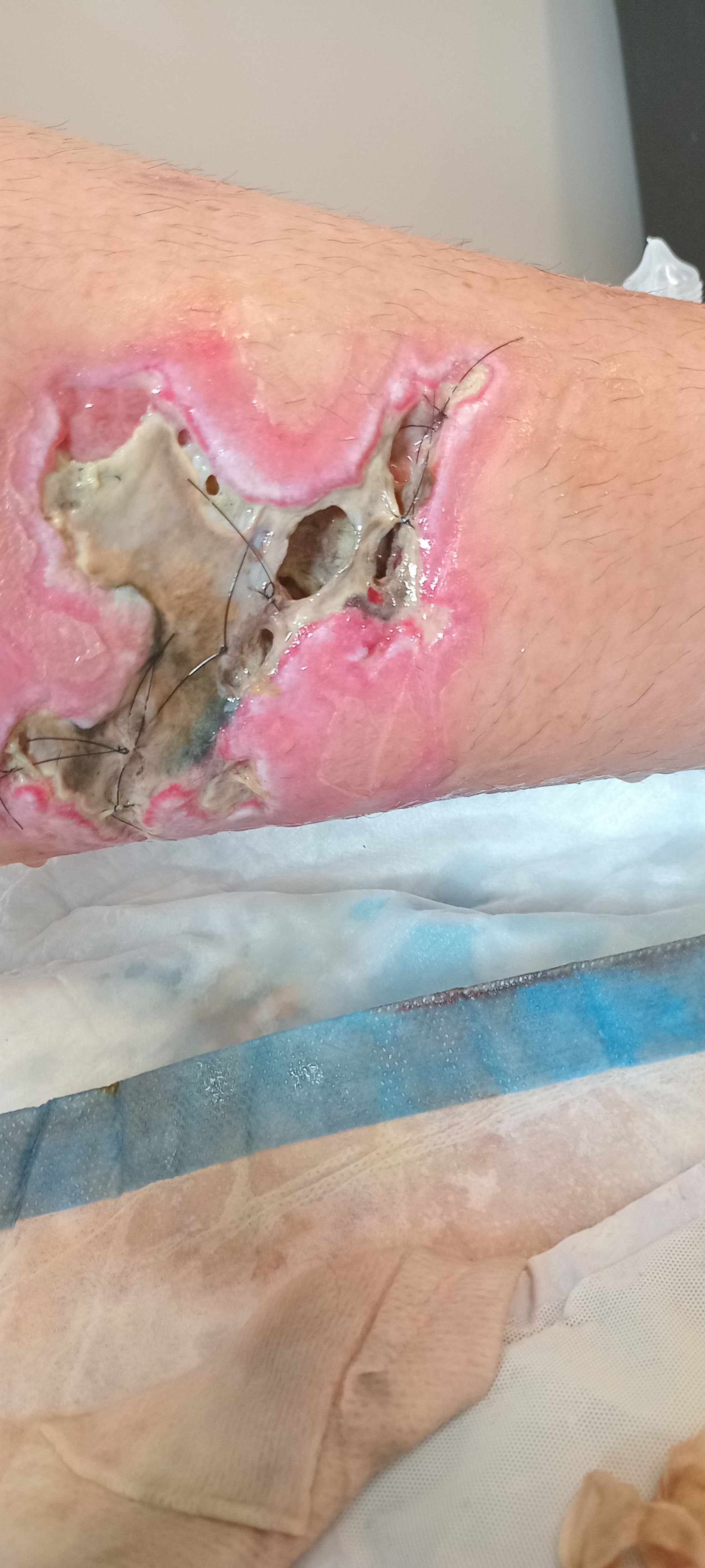 UPDATE! One month in- September- Still swollen, staving off infection 3” deep HOLE in the leg muscle! The struggle is real. Please continue to give and share, in you can!!!
