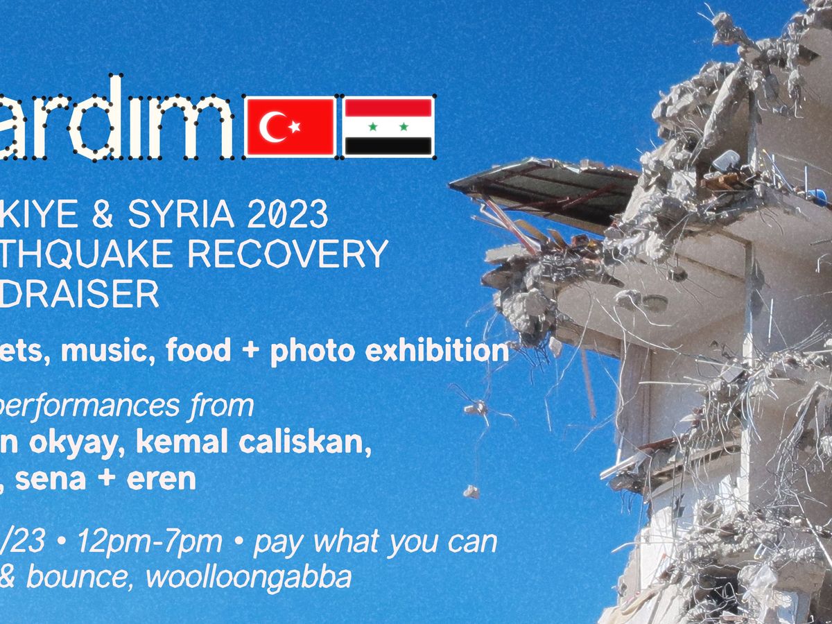 The fundraiser will be soundtracked by selections from some of our local Turkish community here in Meanjin/Brisbane (Sena, Edgé and Eren), as well as a live performance from Atman Okyay & Kemal Caliskan.