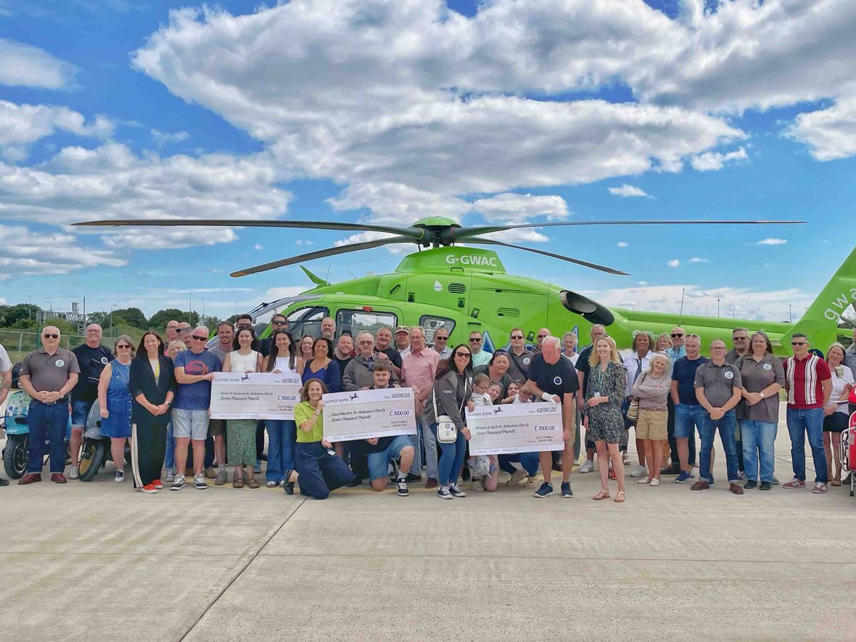 Yate and Sodbury Scooter Club have presented Great Western Air Ambulance Charity (GWAAC), Dorset and Somerset Air Ambulance (DSAA), and Wiltshire and Bath Air Ambulance with cheques of £7,000 each to help fund their vital services.