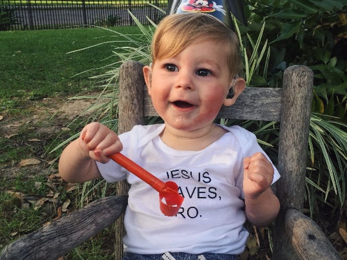 Caden just turned a year old on March 26, 2016. He was born with bilateral sensorineural hearing loss and is deaf in both ears. We recently found out the cause of his hearing loss. While I was pregnant with my sweet boy I caught the cytomegalovirus (CMV), which I would've shown no symptoms. This particular virus is very dangerous for the baby in utero as it can travel to the baby and cause many problems. Caden was born with congenital CMV, which has caused developmental delays, cerebral palsy, microcephaly, hearing loss, and he is more likely to have seizures due to calcifications around his brain. We have started our journey with sign language, hearing aids, speech therapy, cochlear implants, occupational therapy, and physical therapy. Due to Caden's cerebral palsy it's difficult for him to move his arms in a way that other kids his age do. He hasn't quite started crawling or walking yet, but he's almost got the hang of sitting up all on his own! His therapists have been making great progress with him! Caden loves being outside, loves his big brother, and he absolutely adores dogs!! He is most vocal and active when he gets to play with dogs and puppies! He gets so excited and starts trying to reach for and pat the dogs, and cooing and making lots of noise. Any noise he makes is great for his vocal chords! Having a therapy dog for Caden will help him improve his motor skills, motivate him to speak and make sounds, and improve his mood after many therapy sessions.