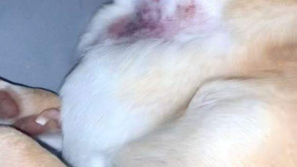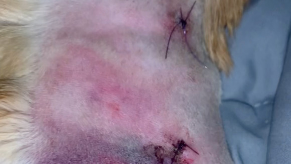 Swelling and wound under his chin on his neck...