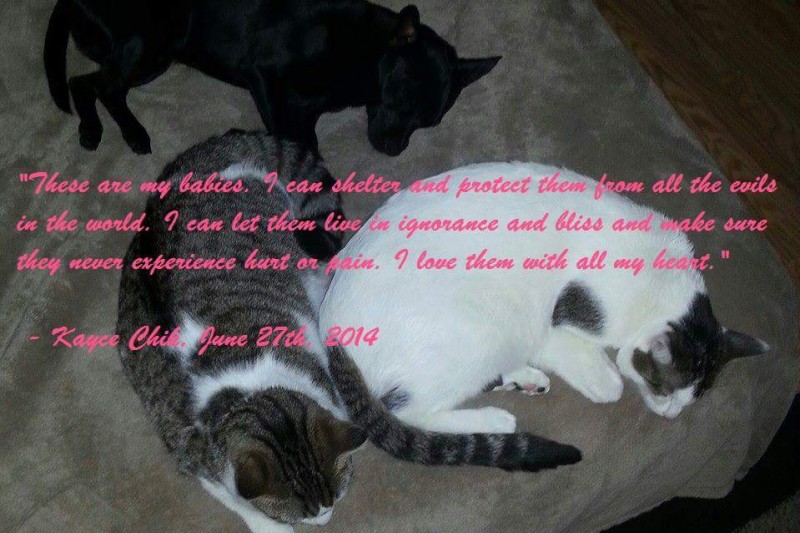 We appreciate the help and support of the community. . .in fact, we now have members all across the country! We are strong, we are determined, and we want to bring these pets home. . .for their owner Kayce, and for Kayce’s family. All contributions will be greatly appreciated. . . .thank you ~