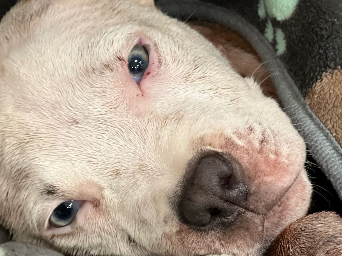 Yeti Update: he is finally out of the ICU! He is using his left front leg more and more each day and his wounds are healing up well. He has a voracious appetite and loves nothing more than to snuggle under a soft blanket.