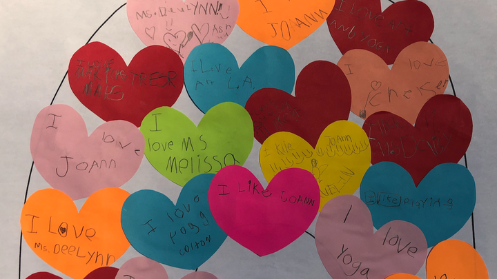 Check out the photo and how many times yoga was mentioned by the kids on their favorite things about school display! As Katie reminds them every week: You are the light.