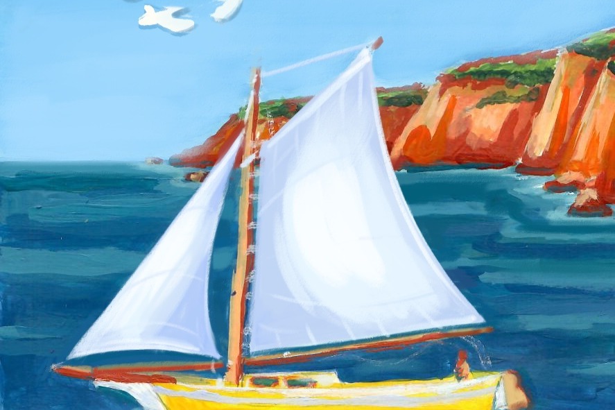 - Paint a mural depicting an large sail with the sea, sky, and doves in the background