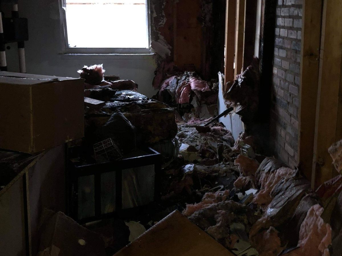 After waiting and watching firefighters go back and forth for more than a few hours, things started to calm down. Once we had gotten the ok we went to see the damage and thankfully we were able to find Dozer. As we entered our home, our living room was destroyed, everything was soaked and freezing. Our floors were covered in ice, ash, and dirt. We moved towards our bedroom and we were devastated by what we have seen. All of our belongings were tossed all over, broken, burned, and covered in water. The bed where we were sleeping on, a few hours prior, was burned. We are very blessed to still be alive as well as everyone else in our building.
