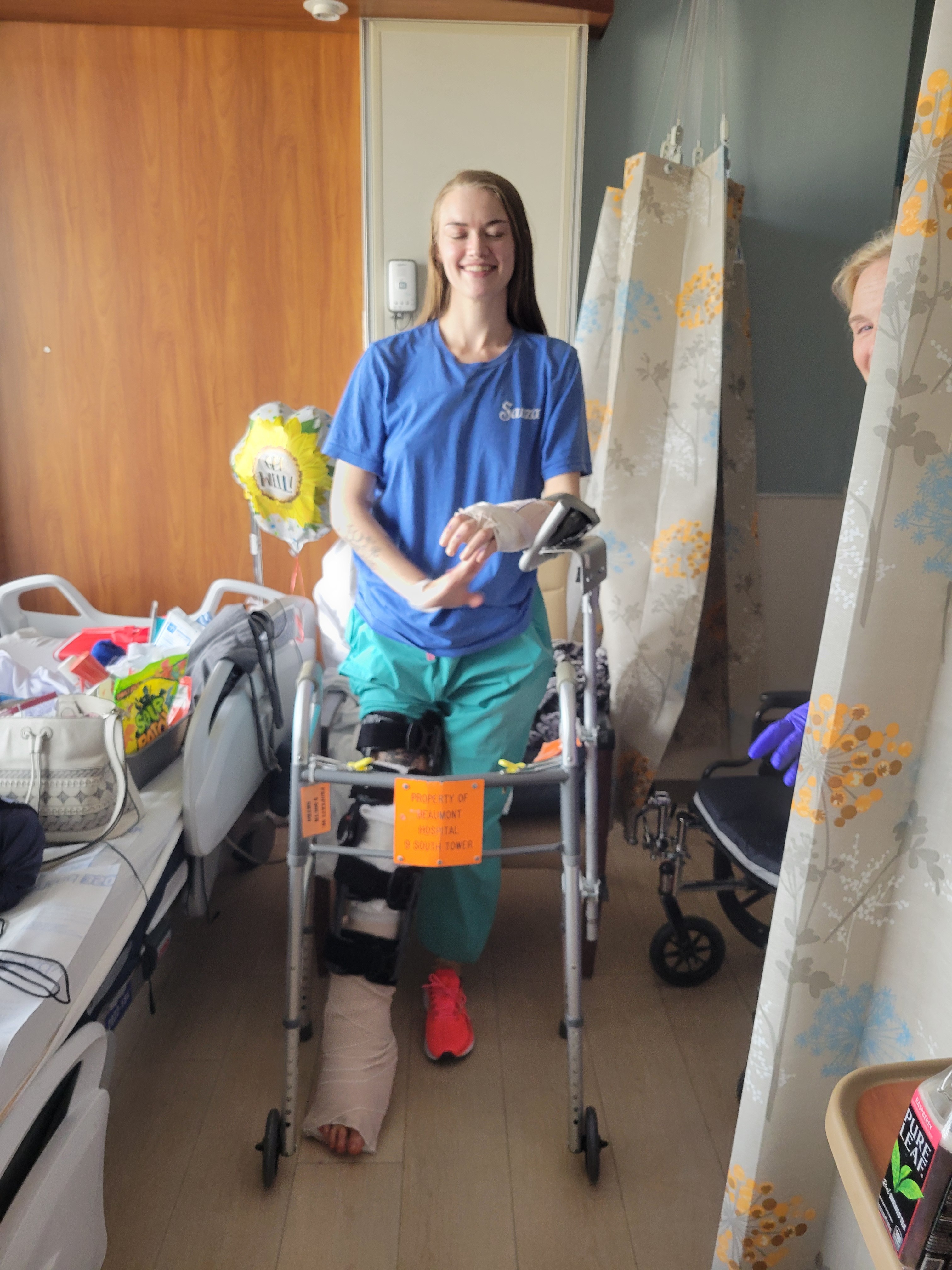 Rebekah is a devoted mother, daughter, sister, fiancé' and friend. Seeing her in such intense pain has been heartbreaking for all of us. Her injuries include a broken nose; a shattered right kneecap, heel, ankle, and foot; and a deep laceration to her left hand with torn tendons. She has had 6 surgeries, which we hope there will be no need for more.