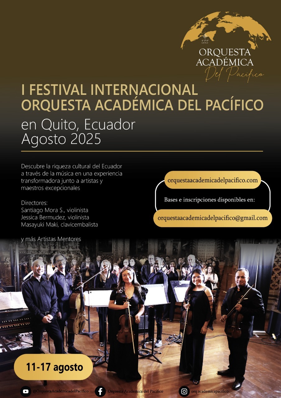 Between August 11th and 17th, our team of Orquesta Académica del Pacífico will be presenting an international music festival at the heart of Quito’s Historic Center—one of the best-preserved colonial districts in South America. The area pulses with cultural richness and centuries-old tradition, making it the perfect setting for a meaningful artistic exchange.
